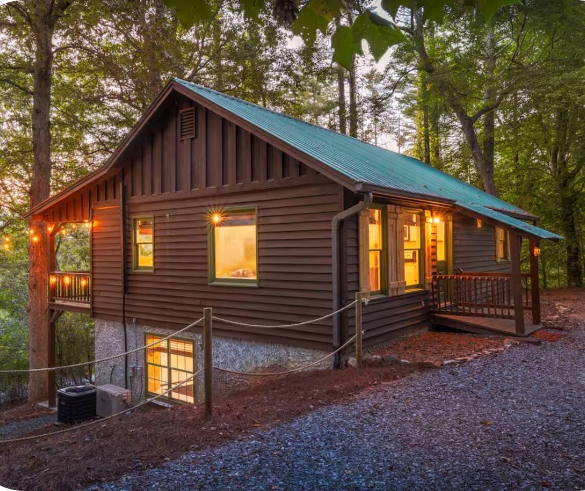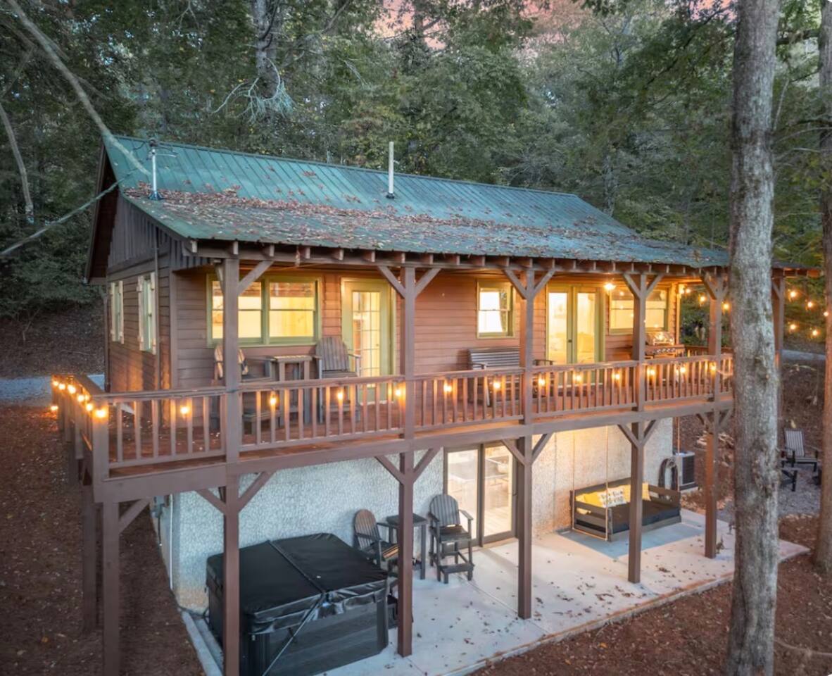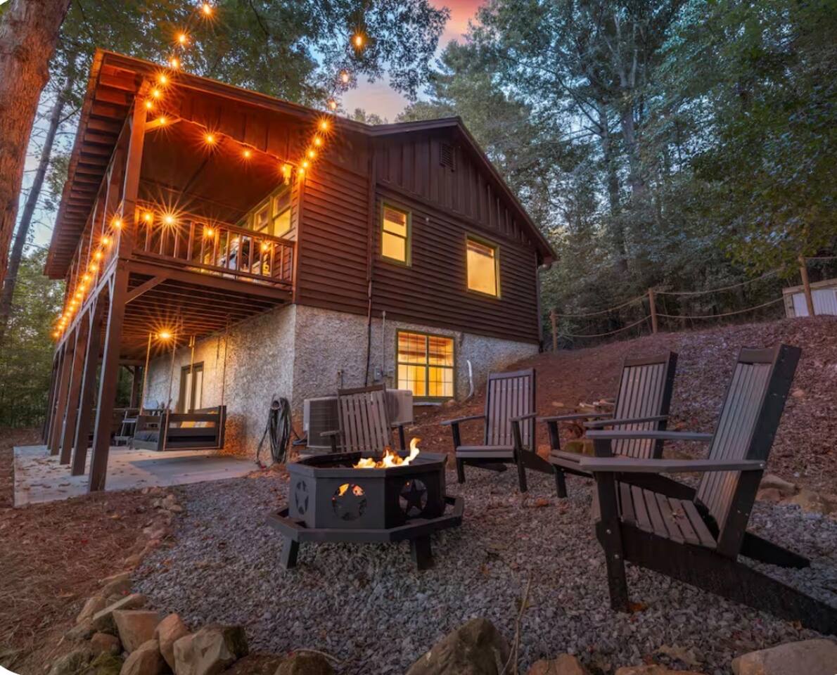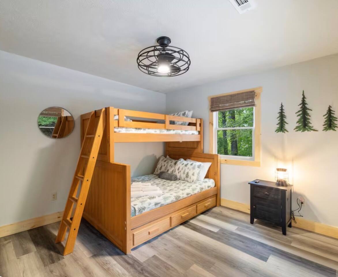 🏡 THE SPACE Tucked in the trees but close to everything, this cabin is designed for relaxation, connection, and a little fun competition. Start your mornings on the expansive deck with coffee in hand, windows open, mountain air rolling in. Evenings? That’s where this place shines… hot tub bubbling, fire crackling, stars putting on a full show. Inside, you’ll find a cozy living space with an electric fireplace and streaming-ready Roku TV, plus a fully stocked kitchen for easy meals at home. ⸻ 🎯 WHY YOU’LL LOVE IT • Hot tub under the stars • Fire pit for s’mores & stories • Game room: ping pong + skee-ball+ Darts • Pet friendly 🐾 • Easy roads (no stress getting there) • 10 mins to Downtown Blue Ridge • Spacious deck surrounded by trees ⸻ 🛏️ SLEEPING SETUP Designed for groups without feeling crowded: • Main level king bedroom • Bunk room with full over twin bunk and additional twin bed. • Terrace level king suite + ensuite bath • Futon + sofa for extra guests All beds feature comfortable linens that actually feel good after a long day exploring. 🛁 Bathrooms: • Shampoo, Conditioner, and Body wash provided. • Walk in showers for easy access • Washer and Dryer with Laundry pods. ⸻ 🍳 KITCHEN + DINING Fully stocked kitchen with everything you need: • Stainless steel appliances • Drip coffee maker + crockpot (Bring your own coffee) • Toaster, blender, essentials • Dining table + island seating • Outdoor grill + deck dining Cook in… or bring takeout back and eat under the trees. ⸻ 🎮 ENTERTAINMENT This isn’t a “sit quietly and scroll your phone” cabin (unless you want it to be): • Ping pong tournaments • Skee-ball showdowns • Roku TVs throughout • Fire pit hangouts • Hot tub resets ⸻ 🐾 PET FRIENDLY Bring your dogs… they’ll love it here just as much as you do. ⸻ 📍 LOCATION You get the best of both worlds: • 10 minutes to Downtown Blue Ridge • Close to wineries, hiking, and the Toccoa River • Near Mercier Orchards, shops, and restaurants • Easy access roads (huge plus for guests) ⸻ ⚠️ GOOD TO KNOW You’re in the mountains, not a subdivision: Wildlife sightings can happen (deer, birds, maybe even a bear). Keep food secured and enjoy nature from a respectful distance. ⸻ ✨ CLOSING LINE This isn’t just a place to stay… it’s where mornings are slow, nights last longer, and nobody wants to leave.