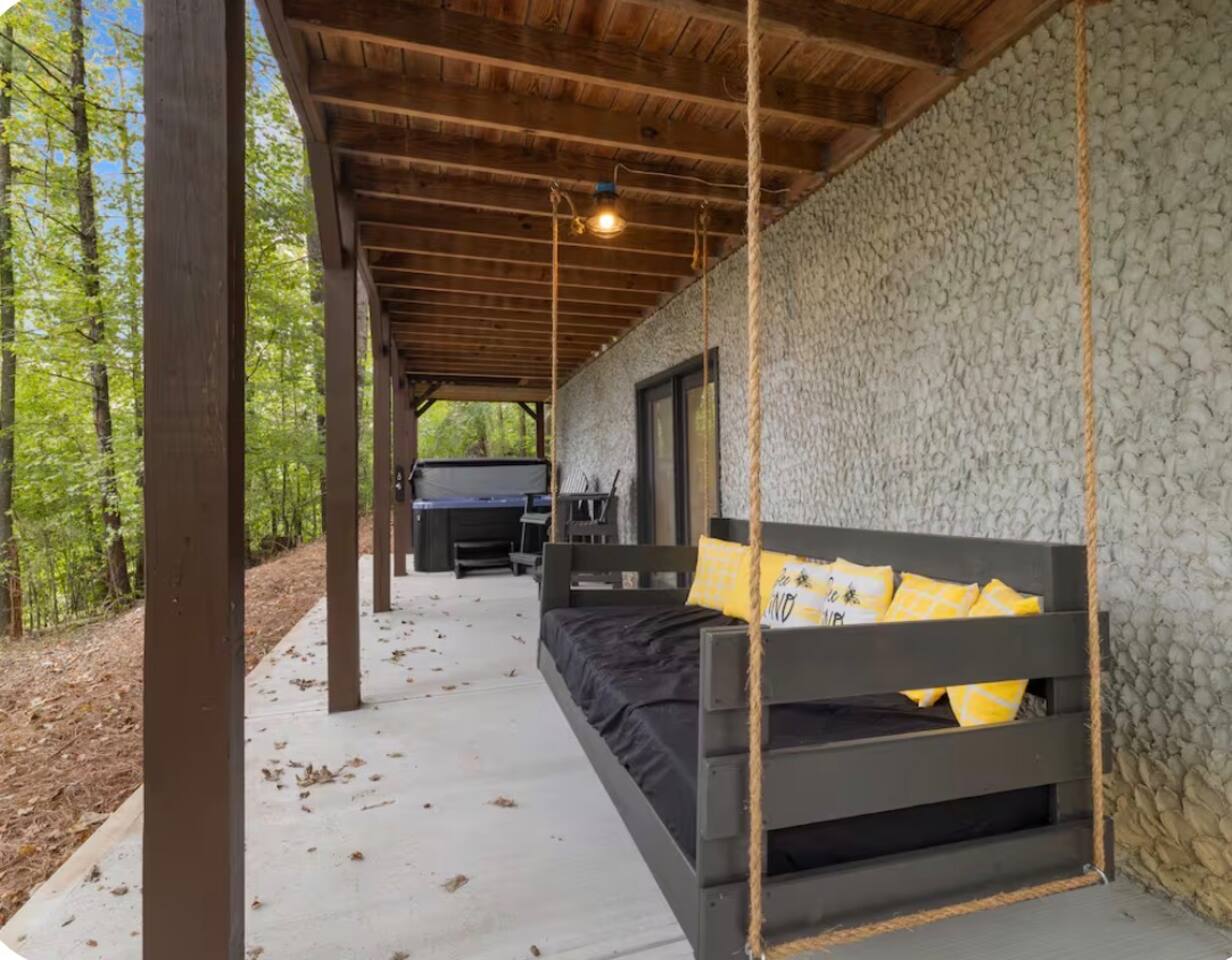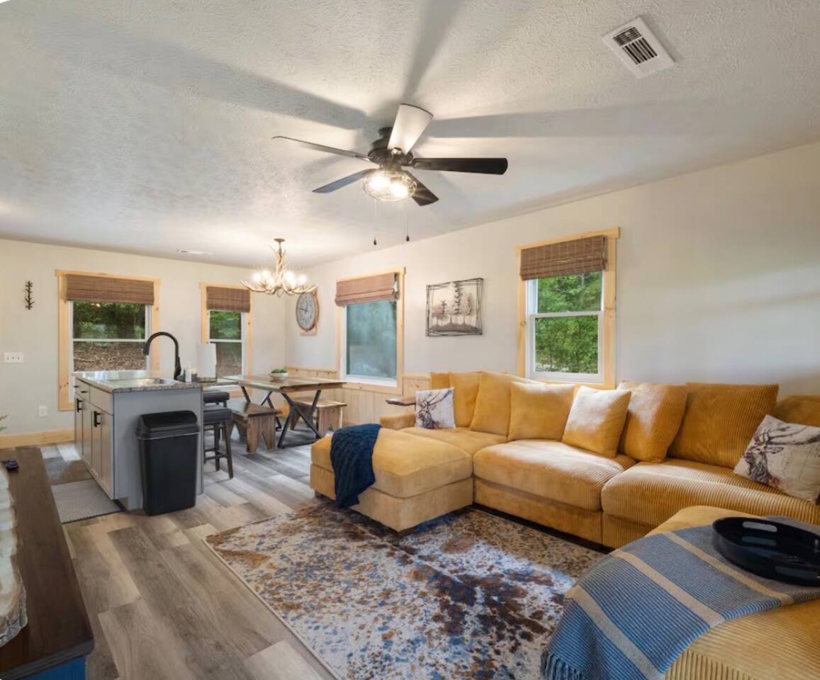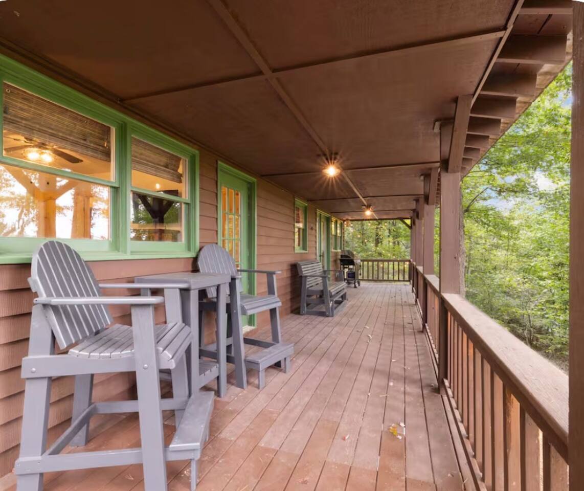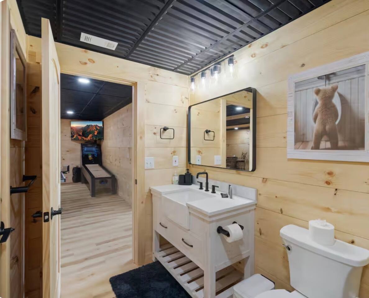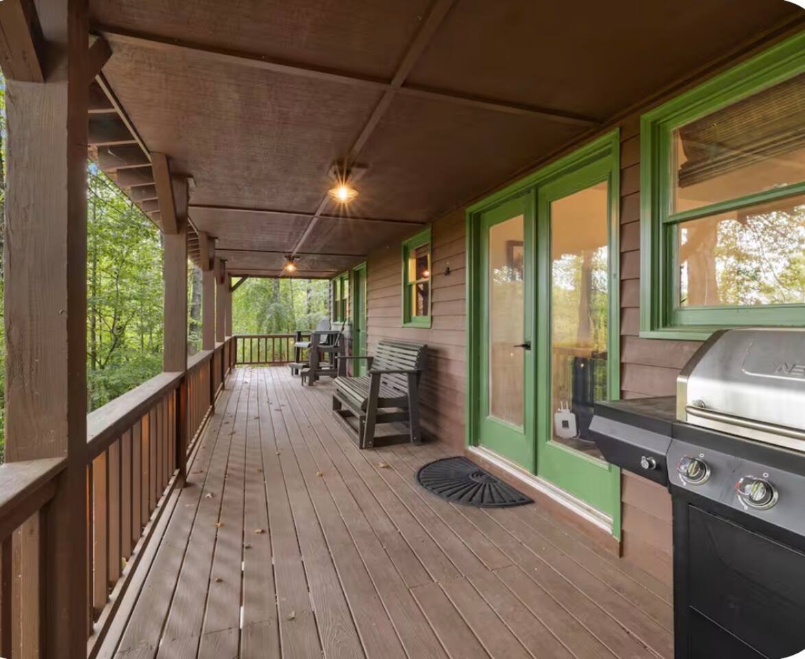 🏡 THE SPACE Tucked in the trees but close to everything, this cabin is designed for relaxation, connection, and a little fun competition. Start your mornings on the expansive deck with coffee in hand, windows open, mountain air rolling in. Evenings? That’s where this place shines… hot tub bubbling, fire crackling, stars putting on a full show. Inside, you’ll find a cozy living space with an electric fireplace and streaming-ready Roku TV, plus a fully stocked kitchen for easy meals at home. ⸻ 🎯 WHY YOU’LL LOVE IT • Hot tub under the stars • Fire pit for s’mores & stories • Game room: ping pong + skee-ball+ Darts • Pet friendly 🐾 • Easy roads (no stress getting there) • 10 mins to Downtown Blue Ridge • Spacious deck surrounded by trees ⸻ 🛏️ SLEEPING SETUP Designed for groups without feeling crowded: • Main level king bedroom • Bunk room with full over twin bunk and additional twin bed. • Terrace level king suite + ensuite bath • Futon + sofa for extra guests All beds feature comfortable linens that actually feel good after a long day exploring. 🛁 Bathrooms: • Shampoo, Conditioner, and Body wash provided. • Walk in showers for easy access • Washer and Dryer with Laundry pods. ⸻ 🍳 KITCHEN + DINING Fully stocked kitchen with everything you need: • Stainless steel appliances • Drip coffee maker + crockpot (Bring your own coffee) • Toaster, blender, essentials • Dining table + island seating • Outdoor grill + deck dining Cook in… or bring takeout back and eat under the trees. ⸻ 🎮 ENTERTAINMENT This isn’t a “sit quietly and scroll your phone” cabin (unless you want it to be): • Ping pong tournaments • Skee-ball showdowns • Roku TVs throughout • Fire pit hangouts • Hot tub resets ⸻ 🐾 PET FRIENDLY Bring your dogs… they’ll love it here just as much as you do. ⸻ 📍 LOCATION You get the best of both worlds: • 10 minutes to Downtown Blue Ridge • Close to wineries, hiking, and the Toccoa River • Near Mercier Orchards, shops, and restaurants • Easy access roads (huge plus for guests) ⸻ ⚠️ GOOD TO KNOW You’re in the mountains, not a subdivision: Wildlife sightings can happen (deer, birds, maybe even a bear). Keep food secured and enjoy nature from a respectful distance. ⸻ ✨ CLOSING LINE This isn’t just a place to stay… it’s where mornings are slow, nights last longer, and nobody wants to leave.