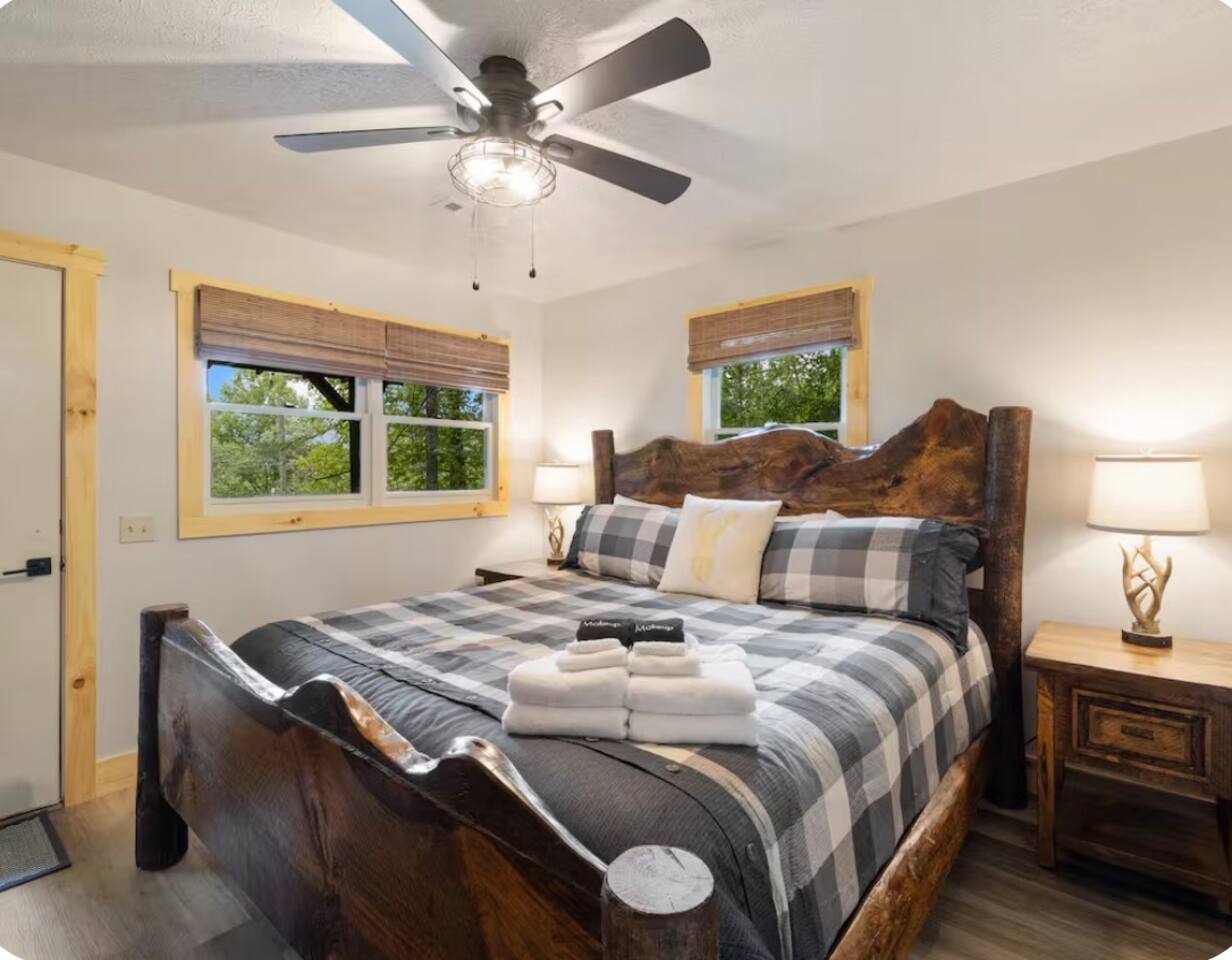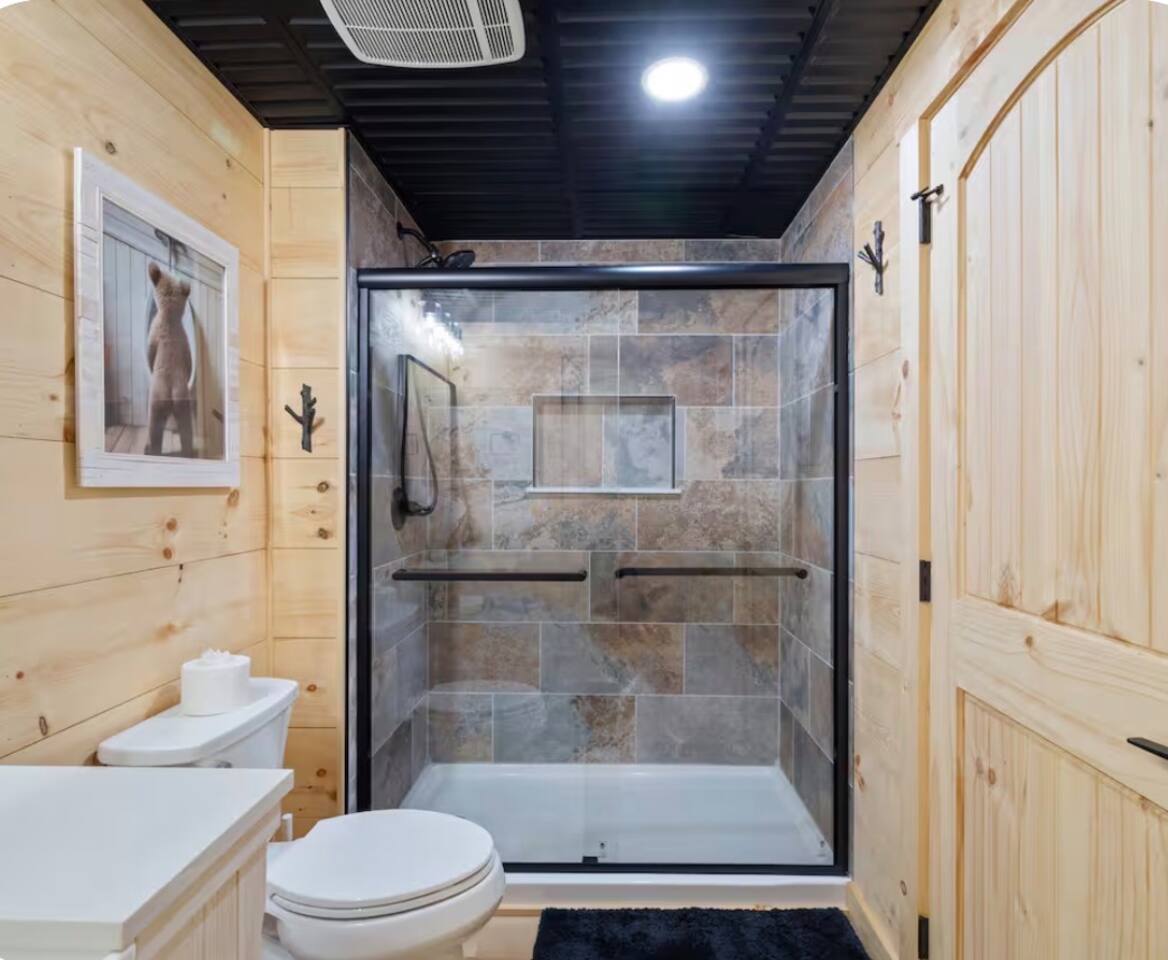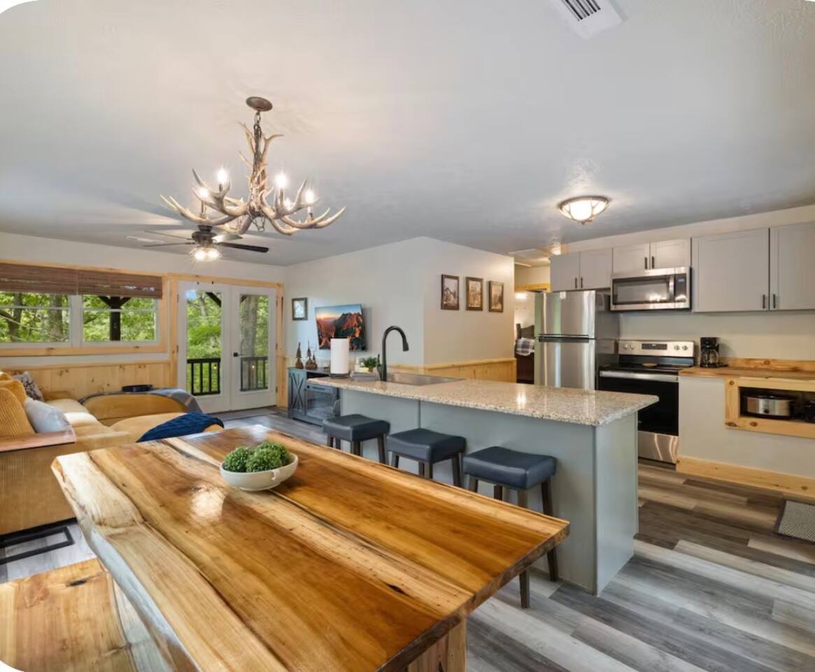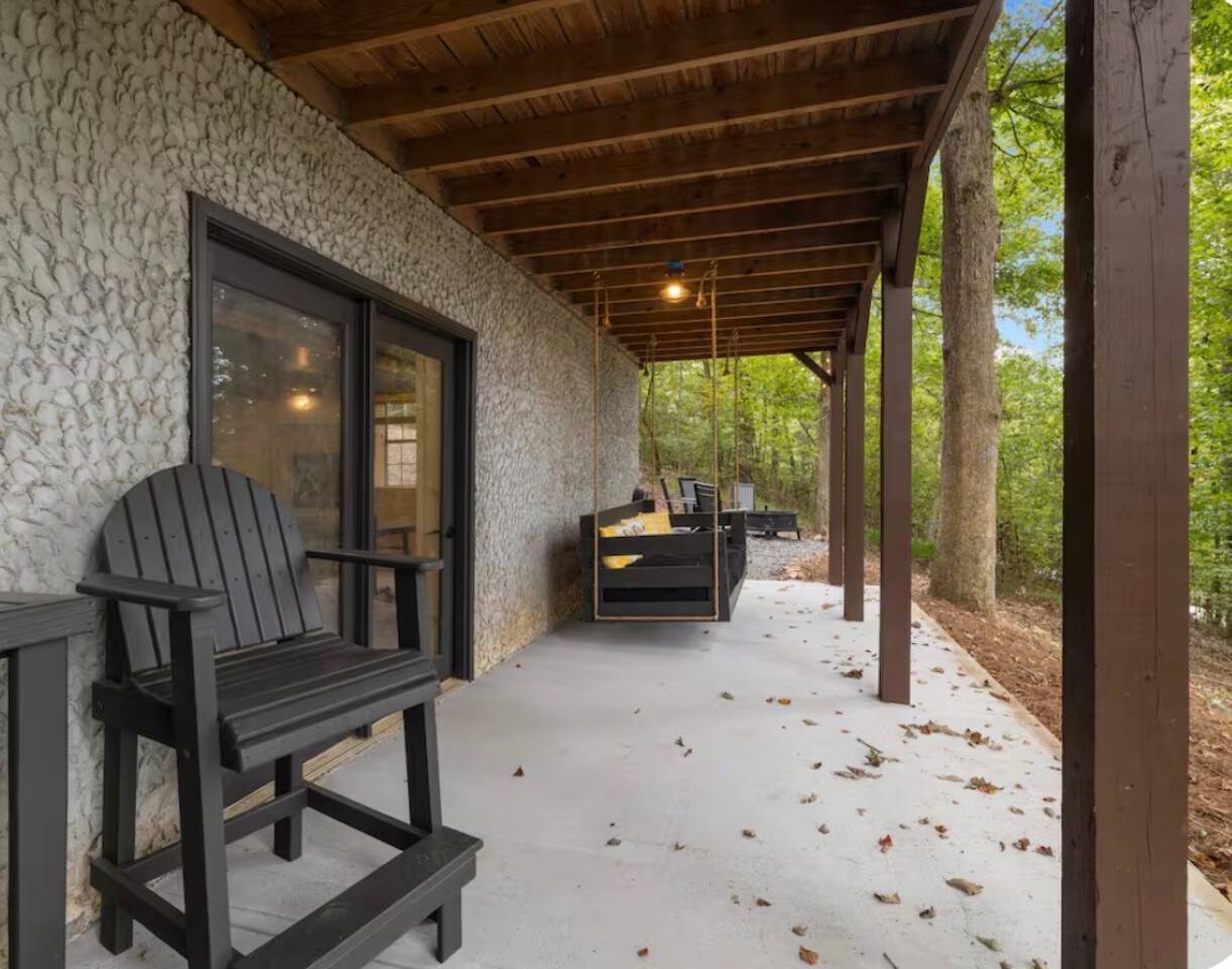 🏡 THE SPACE Tucked in the trees but close to everything, this cabin is designed for relaxation, connection, and a little fun competition. Start your mornings on the expansive deck with coffee in hand, windows open, mountain air rolling in. Evenings? That’s where this place shines… hot tub bubbling, fire crackling, stars putting on a full show. Inside, you’ll find a cozy living space with an electric fireplace and streaming-ready Roku TV, plus a fully stocked kitchen for easy meals at home. ⸻ 🎯 WHY YOU’LL LOVE IT • Hot tub under the stars • Fire pit for s’mores & stories • Game room: ping pong + skee-ball+ Darts • Pet friendly 🐾 • Easy roads (no stress getting there) • 10 mins to Downtown Blue Ridge • Spacious deck surrounded by trees ⸻ 🛏️ SLEEPING SETUP Designed for groups without feeling crowded: • Main level king bedroom • Bunk room with full over twin bunk and additional twin bed. • Terrace level king suite + ensuite bath • Futon + sofa for extra guests All beds feature comfortable linens that actually feel good after a long day exploring. 🛁 Bathrooms: • Shampoo, Conditioner, and Body wash provided. • Walk in showers for easy access • Washer and Dryer with Laundry pods. ⸻ 🍳 KITCHEN + DINING Fully stocked kitchen with everything you need: • Stainless steel appliances • Drip coffee maker + crockpot (Bring your own coffee) • Toaster, blender, essentials • Dining table + island seating • Outdoor grill + deck dining Cook in… or bring takeout back and eat under the trees. ⸻ 🎮 ENTERTAINMENT This isn’t a “sit quietly and scroll your phone” cabin (unless you want it to be): • Ping pong tournaments • Skee-ball showdowns • Roku TVs throughout • Fire pit hangouts • Hot tub resets ⸻ 🐾 PET FRIENDLY Bring your dogs… they’ll love it here just as much as you do. ⸻ 📍 LOCATION You get the best of both worlds: • 10 minutes to Downtown Blue Ridge • Close to wineries, hiking, and the Toccoa River • Near Mercier Orchards, shops, and restaurants • Easy access roads (huge plus for guests) ⸻ ⚠️ GOOD TO KNOW You’re in the mountains, not a subdivision: Wildlife sightings can happen (deer, birds, maybe even a bear). Keep food secured and enjoy nature from a respectful distance. ⸻ ✨ CLOSING LINE This isn’t just a place to stay… it’s where mornings are slow, nights last longer, and nobody wants to leave.