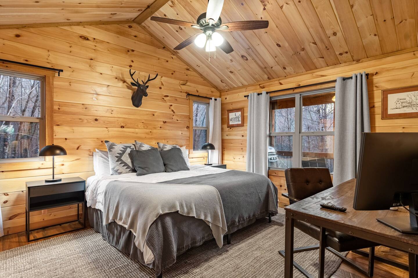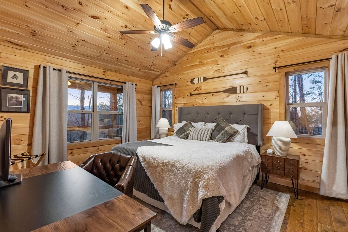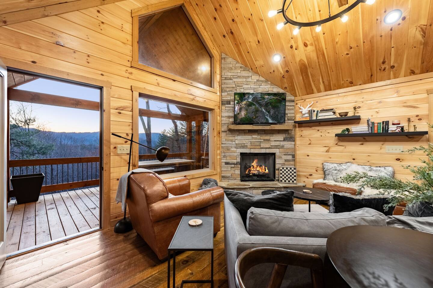 🏔️ Your Mountain Reset | Views, Firepit, 15 Min to Downtown There’s a moment here… right around sunset… when the sky softens, the mountains stretch forever, and the fire crackles just enough to make you stay outside a little longer. That’s what this place is all about. Tucked on a peaceful ridge just 15 minutes from Downtown Blue Ridge, this cabin gives you that rare mix of privacy, views, and convenience without compromise. ⸻ ✨ The Views (The reason people book… and rebook) Long-range mountain views greet you from nearly every angle. Start your morning on the deck with coffee, and end your night around the firepit under string lights, watching the mountains fade into the horizon. ⸻ 🛋️ Designed for Comfort + Connection Inside feels like a true escape, warm wood interiors, soaring ceilings, and a space that brings everyone together without feeling crowded. • 2 King Suites with comfortable beds + luxury linens • Open living space with a gas stone fireplace • Large windows that keep the views front and center • Cozy, elevated cabin design that actually feels like a getaway ⸻ 🛁 Thoughtful Touches That Matter The little things are already taken care of so you can fully relax: • Shampoo, conditioner & body wash provided • Fresh linens + towels • Clean, modern bathrooms with spa-like feel • Coffee maker and k-cups provided. ⸻ 🍳 Stay In or Head Out (You’ve got both options) Whether you’re cooking together or heading into town, it’s easy here. • Fully stocked kitchen for meals at home • Grill and utensils for cooking. • Smart TVs throughout for laid-back nights • Fast Wi-Fi + dual workspaces if you’re mixing work + • Fire pit under the stars with Mountain View’s. • Pet-friendly so your dog gets the vacation too • Newly added Sauna coming soon. ⸻ 📍 Location That Wins Every Time Close enough to enjoy everything, far enough to feel like you escaped it all: • 15 minutes to Downtown Blue Ridge • Near hiking, wineries, and outdoor adventures • Quiet, private setting with no distractions ⸻ 🔥 Why Guests Love It It’s not just the cabin… it’s how it feels. Slow mornings. Crisp air. Nights by the fire. Views that don’t get old. This is the kind of place you book for a weekend… and start planning your next stay before you leave. We believe in clear communication so your stay feels seamless and stress-free: 🐜 Nature & Wildlife You’re in the mountains—fresh air, forest views, and the occasional seasonal insect are part of the setting. We maintain regular pest control, but this is still nature’s home first. 🔌 Mountain Weather Blue Ridge storms can occasionally cause brief power outages. They’re uncommon, but we provide flashlights and lanterns just in case.