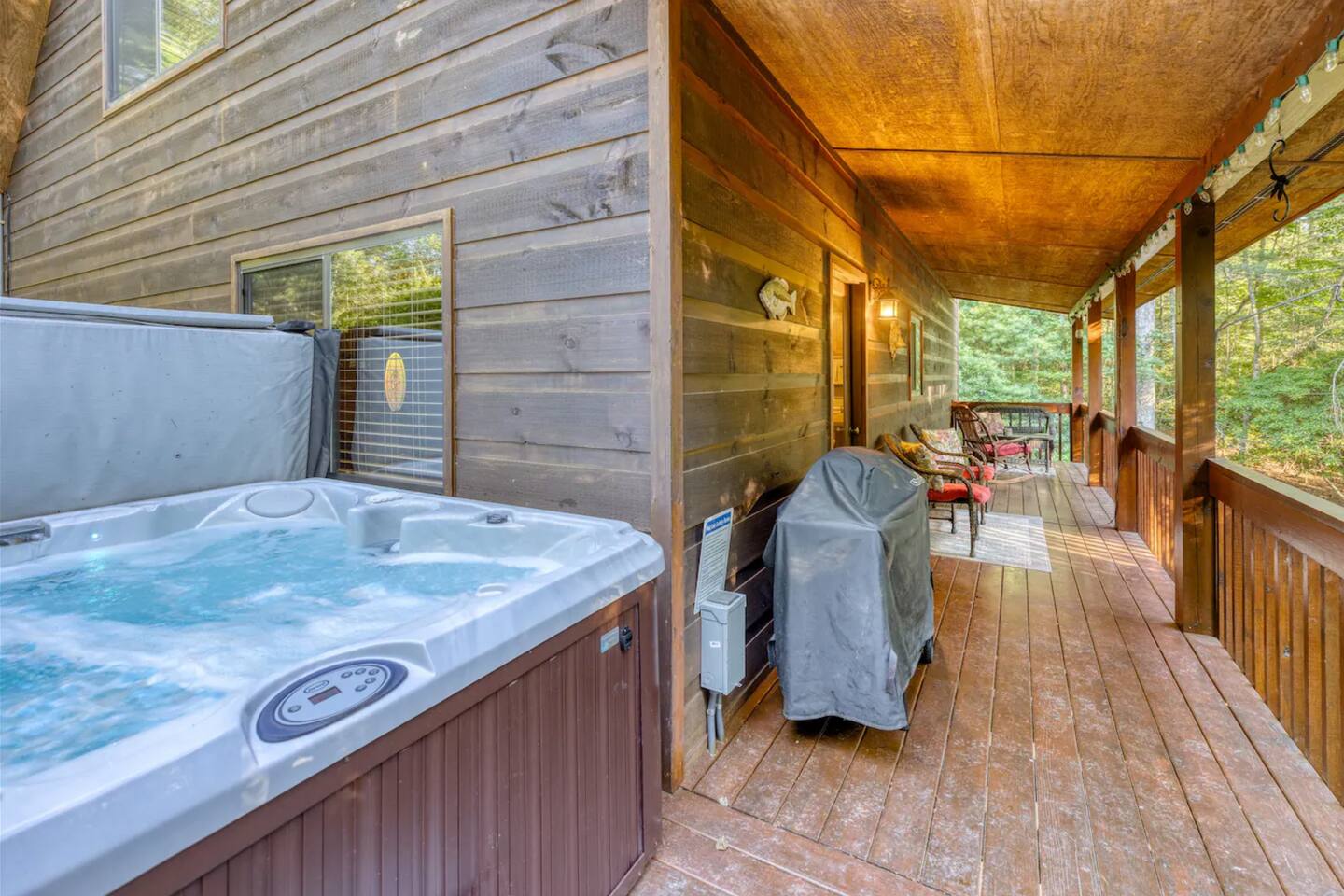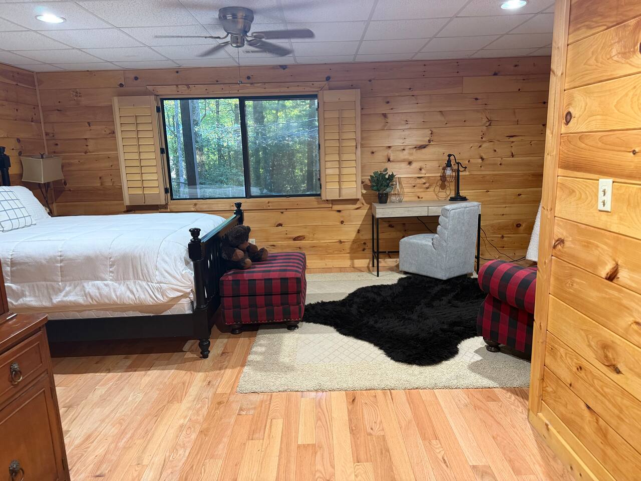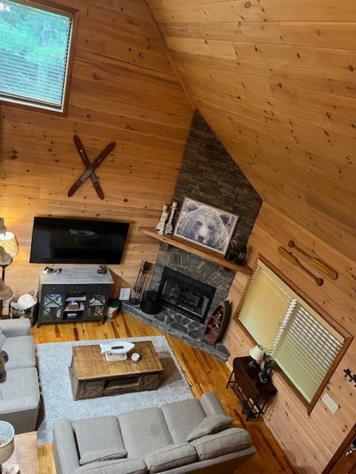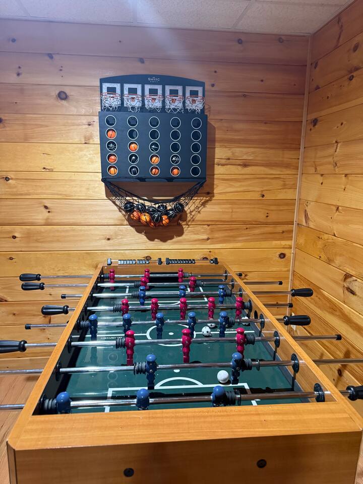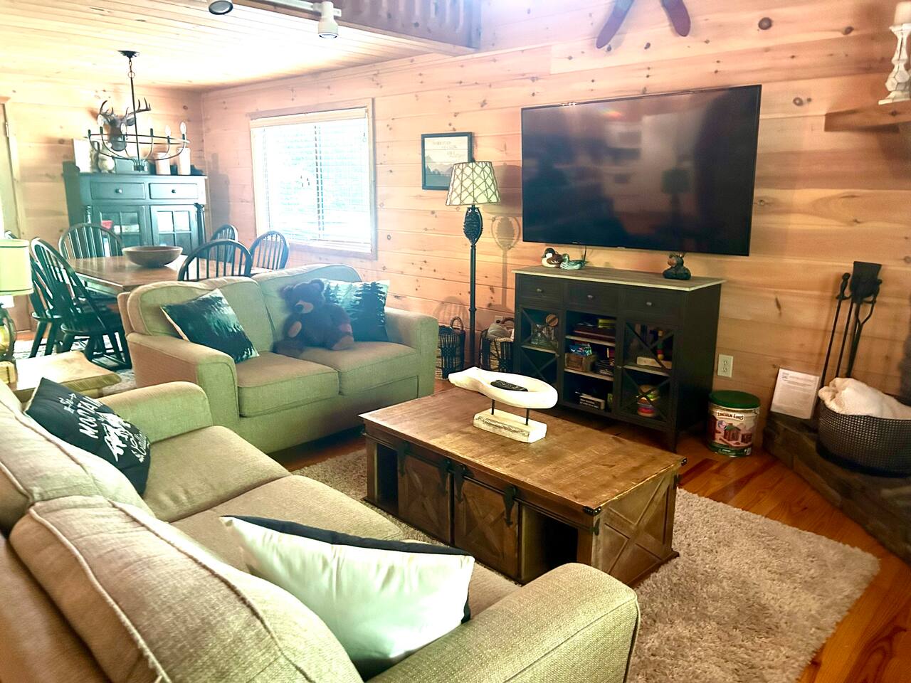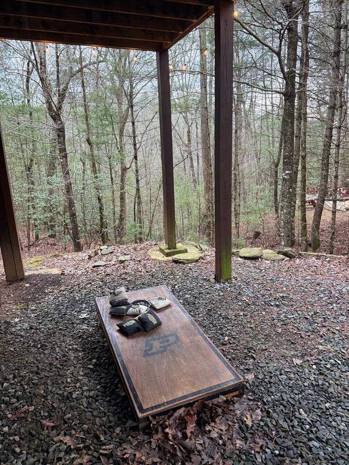 About This Space Hidden among the trees in the North Georgia mountains, this Ellijay cabin is the perfect place to relax, reconnect, and enjoy the slower pace of mountain life. • 3 bedrooms, loft, and 3 full bathrooms • Sleeps multiple guests comfortably • Perfect for families, couples, or group getaways • Quiet, gated mountain community The Space: Living Area • Cozy living room with fireplace • Large Smart TV • Perfect for movie nights • Huge selection of board games Kitchen & Dining • Fully stocked kitchen with cookware, dishes, and essentials • Drip coffee maker and K-cup machine • Coffee, sugar, and flavored syrups provided • Waffle maker with waffle mix and syrup • Spice rack included • High chair and kid-friendly dining items • Dining table and seating for group meals Sleeping Arrangements Master Suite (Top Floor) • King bed with plush linens • Reading chair • Ensuite bathroom with jetted tub • Shampoo, conditioner, and body wash provided • Hair dryer included Bedroom 2 (Main Level) • Queen bed with comfortable pillow-top mattress • Bathroom located across the hall • Shampoo, conditioner, and body wash provided Bedroom 3 (Terrace Level) • Queen bed with pillow-top mattress • Private ensuite bathroom • Shampoo, conditioner, and body wash provided Loft • Two twin beds • Great for kids or additional guests Additional Sleeping • Queen air mattress available Entertainment • Game room with foosball • 300+ game arcade system • Xbox with multiple games • Board games for all ages • Workspace in basement for remote work Outdoor Space • Wraparound deck with seasonal mountain views • Hot tub • Outdoor dining area • Fire pit • Peaceful wooded setting with potential wildlife sightings Community Amenities • Gated community • Community pool (Memorial Day to Labor Day) • Tennis courts • Basketball court • Playground • Private hiking trails with waterfall • 6-acre private lake 200 yards away (fishing and kayaking) • Access to three additional lakes Convenience • Washer and dryer on main level • Pack n play and toddler items • Kid-friendly dishes and supplies • Professionally cleaned Seasonal Touches • Decorated for fall • Decorated for Christmas in December The Experience • Quiet mountain setting • Perfect for relaxing and reconnecting • Ideal for families, couples, and group getaways • Easy access to outdoor activities and nature
