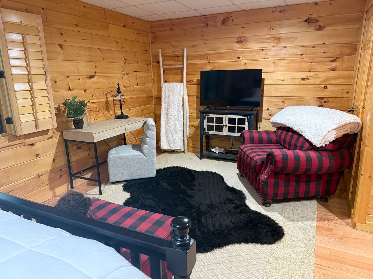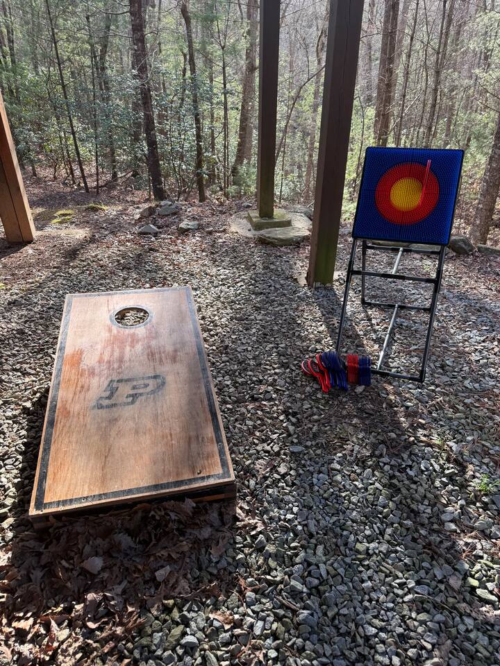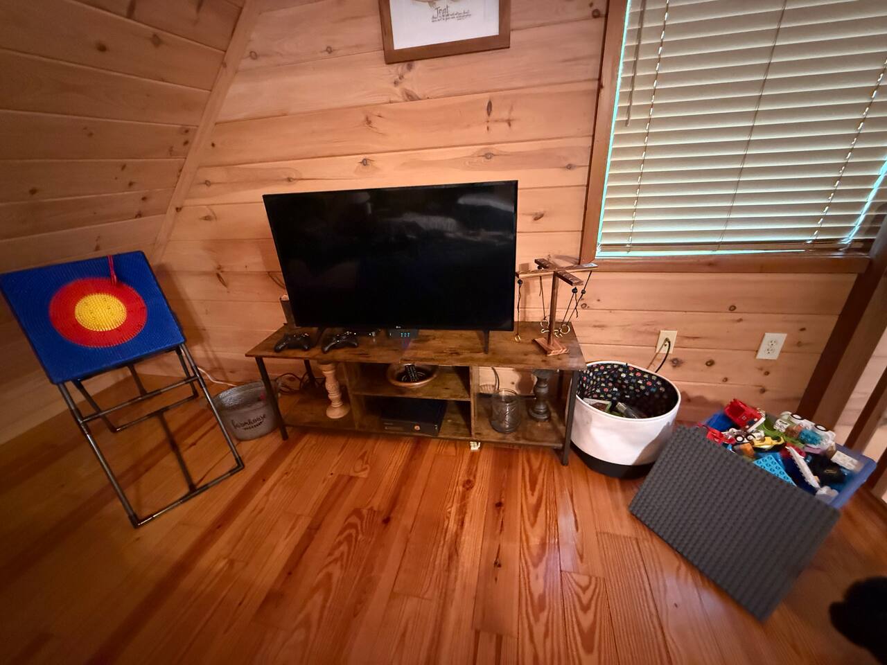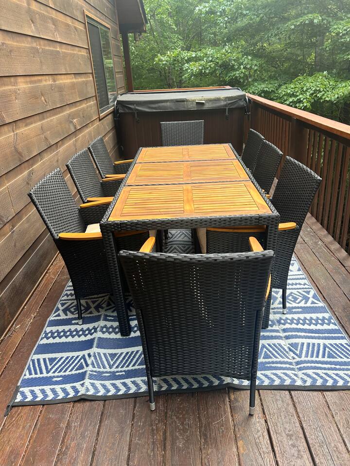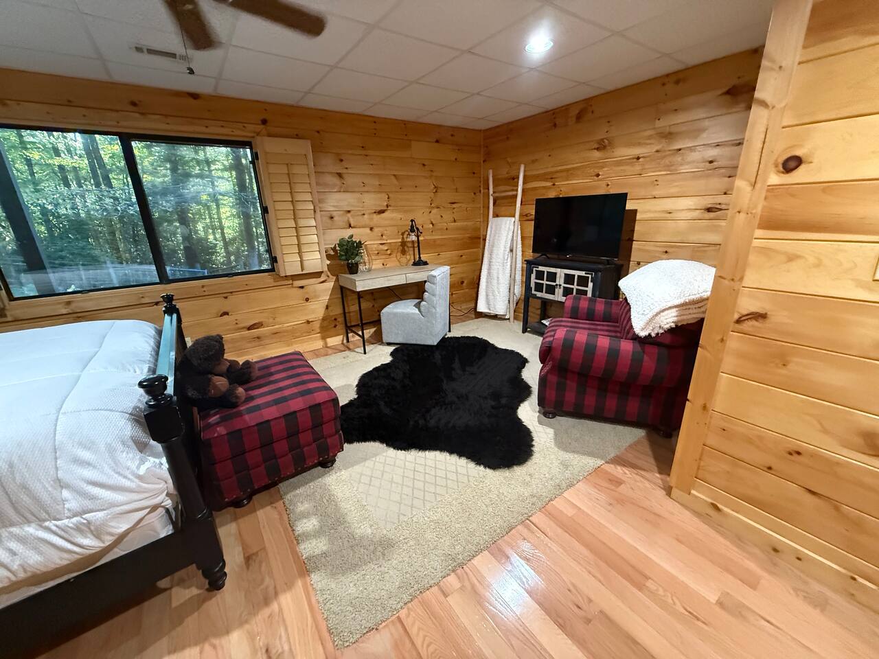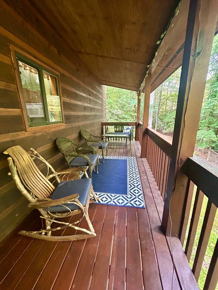 About This Space Hidden among the trees in the North Georgia mountains, this Ellijay cabin is the perfect place to relax, reconnect, and enjoy the slower pace of mountain life. • 3 bedrooms, loft, and 3 full bathrooms • Sleeps multiple guests comfortably • Perfect for families, couples, or group getaways • Quiet, gated mountain community The Space: Living Area • Cozy living room with fireplace • Large Smart TV • Perfect for movie nights • Huge selection of board games Kitchen & Dining • Fully stocked kitchen with cookware, dishes, and essentials • Drip coffee maker and K-cup machine • Coffee, sugar, and flavored syrups provided • Waffle maker with waffle mix and syrup • Spice rack included • High chair and kid-friendly dining items • Dining table and seating for group meals Sleeping Arrangements Master Suite (Top Floor) • King bed with plush linens • Reading chair • Ensuite bathroom with jetted tub • Shampoo, conditioner, and body wash provided • Hair dryer included Bedroom 2 (Main Level) • Queen bed with comfortable pillow-top mattress • Bathroom located across the hall • Shampoo, conditioner, and body wash provided Bedroom 3 (Terrace Level) • Queen bed with pillow-top mattress • Private ensuite bathroom • Shampoo, conditioner, and body wash provided Loft • Two twin beds • Great for kids or additional guests Additional Sleeping • Queen air mattress available Entertainment • Game room with foosball • 300+ game arcade system • Xbox with multiple games • Board games for all ages • Workspace in basement for remote work Outdoor Space • Wraparound deck with seasonal mountain views • Hot tub • Outdoor dining area • Fire pit • Peaceful wooded setting with potential wildlife sightings Community Amenities • Gated community • Community pool (Memorial Day to Labor Day) • Tennis courts • Basketball court • Playground • Private hiking trails with waterfall • 6-acre private lake 200 yards away (fishing and kayaking) • Access to three additional lakes Convenience • Washer and dryer on main level • Pack n play and toddler items • Kid-friendly dishes and supplies • Professionally cleaned Seasonal Touches • Decorated for fall • Decorated for Christmas in December The Experience • Quiet mountain setting • Perfect for relaxing and reconnecting • Ideal for families, couples, and group getaways • Easy access to outdoor activities and nature