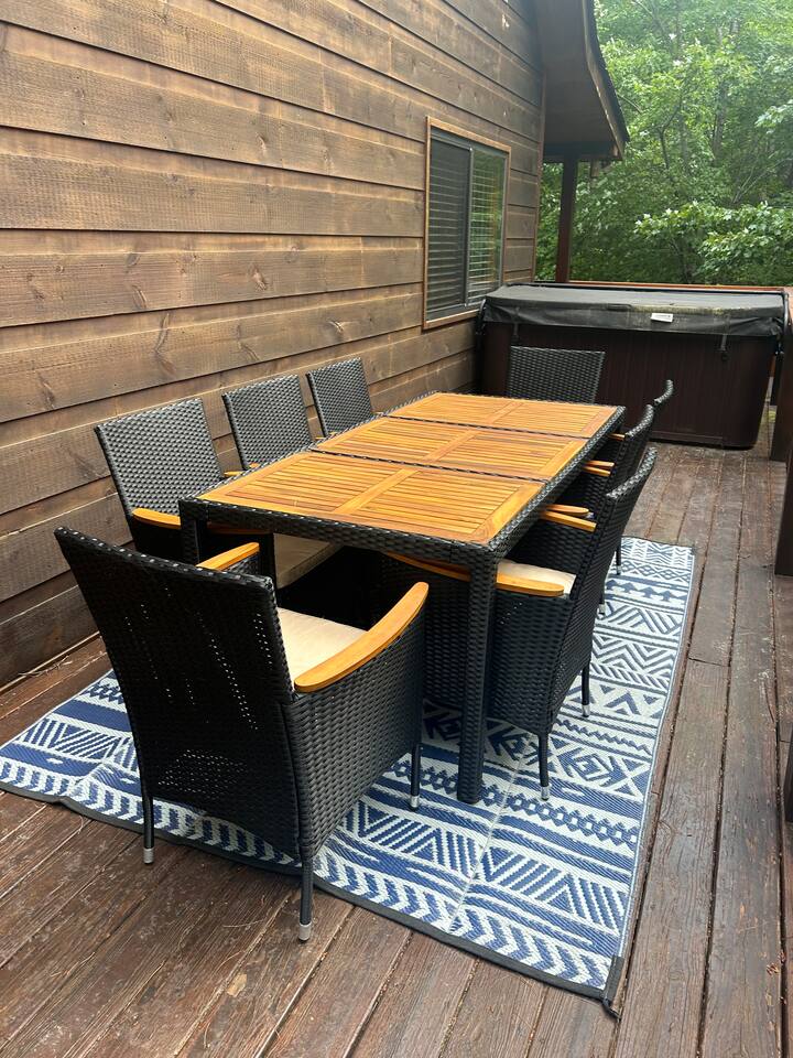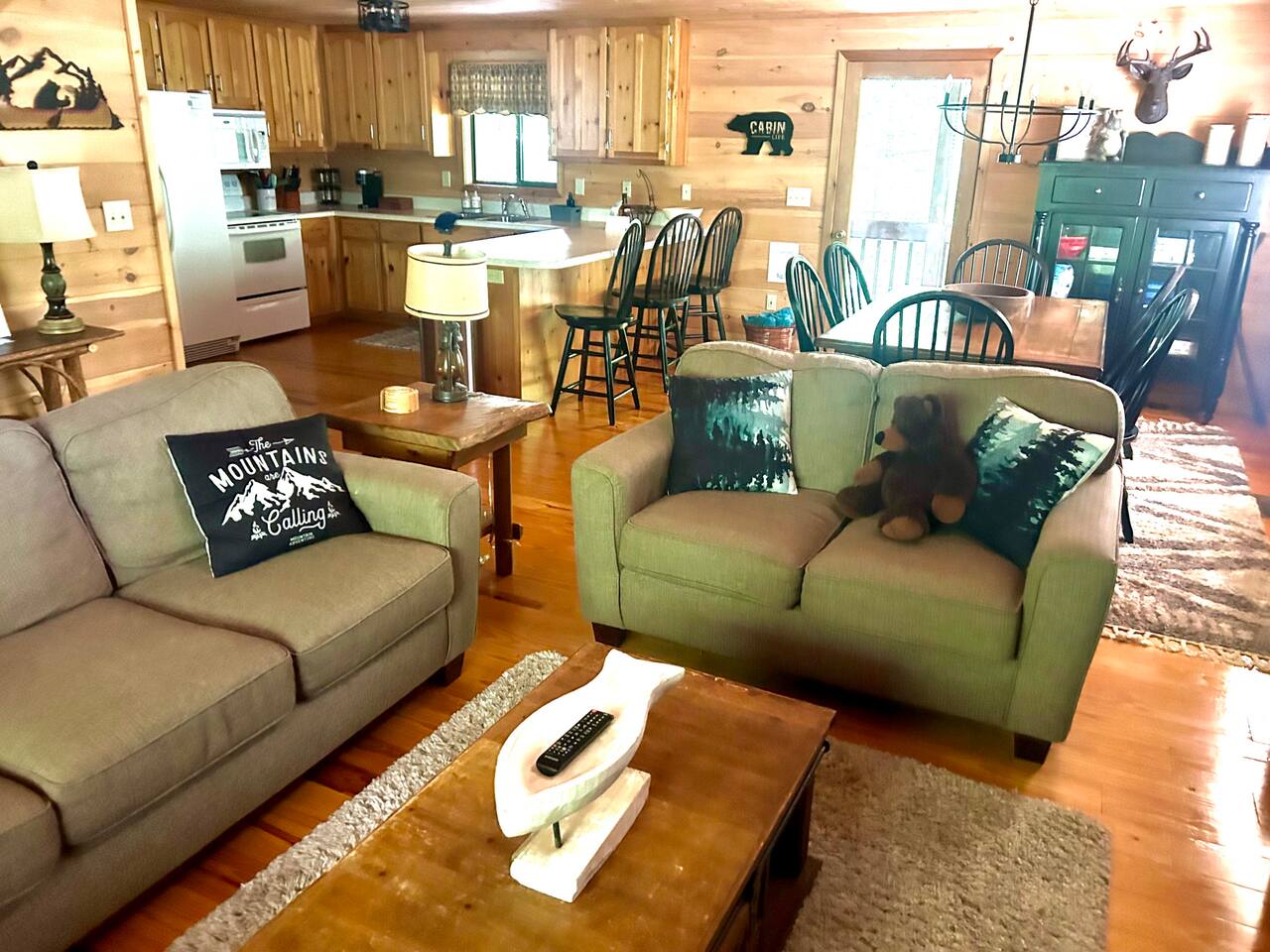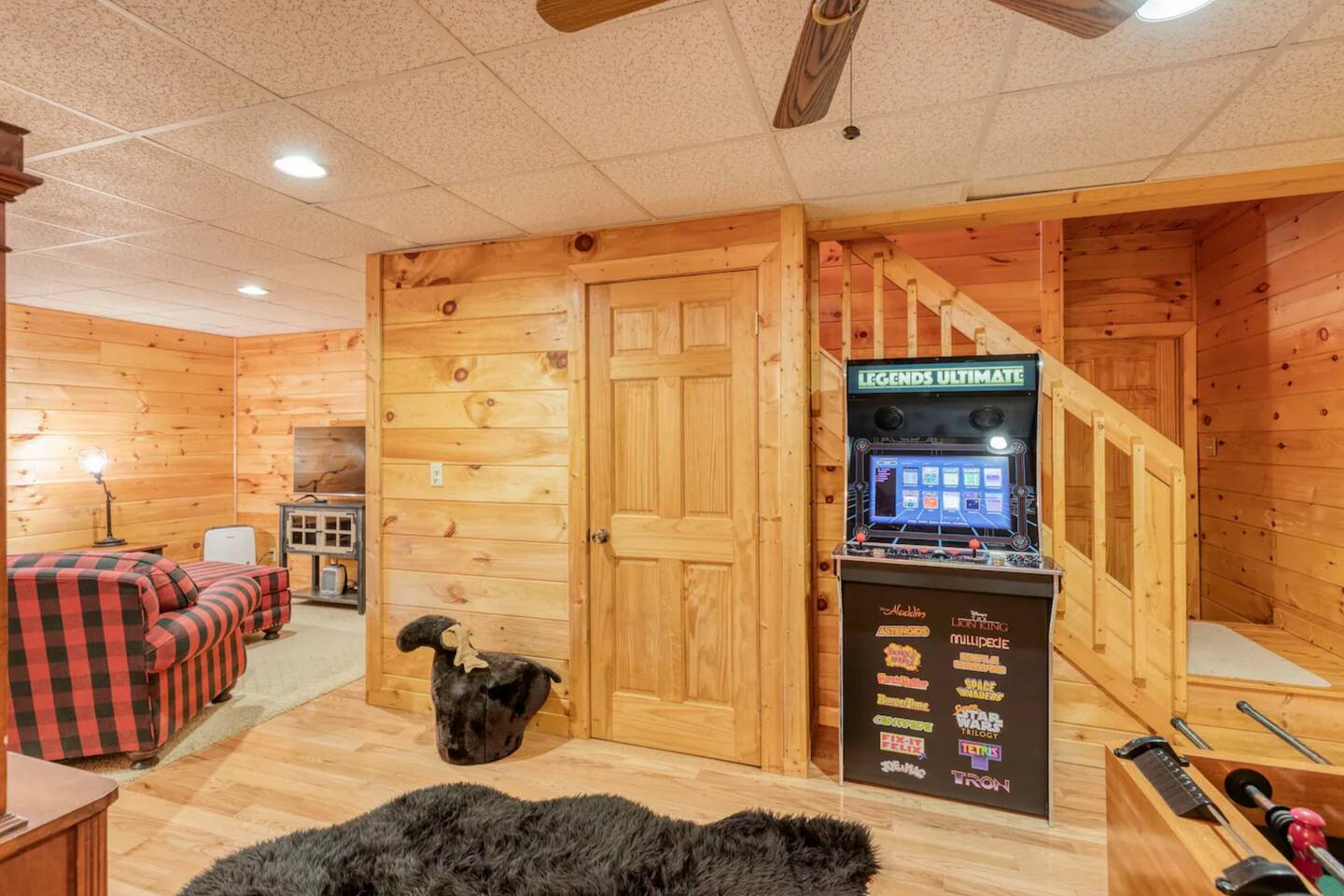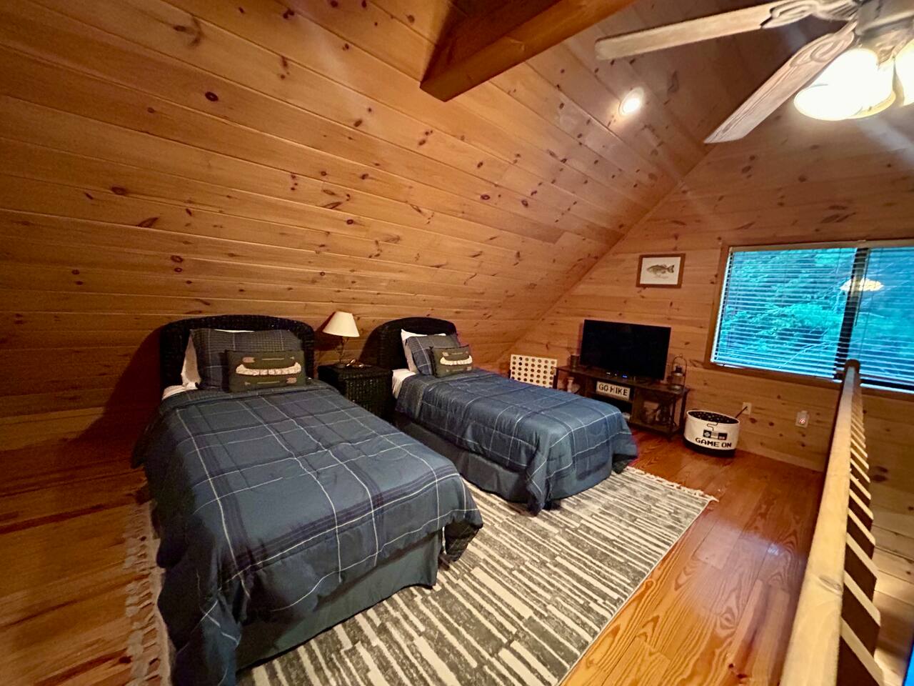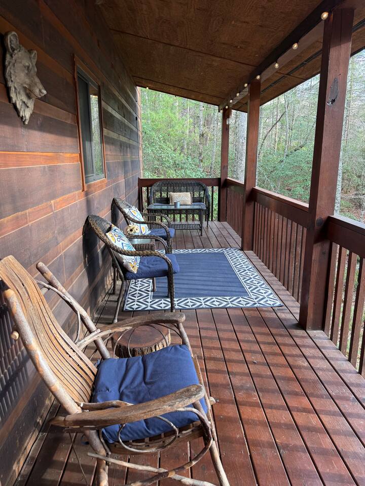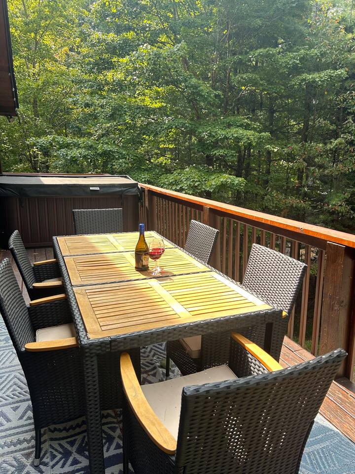 About This Space Hidden among the trees in the North Georgia mountains, this Ellijay cabin is the perfect place to relax, reconnect, and enjoy the slower pace of mountain life. • 3 bedrooms, loft, and 3 full bathrooms • Sleeps multiple guests comfortably • Perfect for families, couples, or group getaways • Quiet, gated mountain community The Space: Living Area • Cozy living room with fireplace • Large Smart TV • Perfect for movie nights • Huge selection of board games Kitchen & Dining • Fully stocked kitchen with cookware, dishes, and essentials • Drip coffee maker and K-cup machine • Coffee, sugar, and flavored syrups provided • Waffle maker with waffle mix and syrup • Spice rack included • High chair and kid-friendly dining items • Dining table and seating for group meals Sleeping Arrangements Master Suite (Top Floor) • King bed with plush linens • Reading chair • Ensuite bathroom with jetted tub • Shampoo, conditioner, and body wash provided • Hair dryer included Bedroom 2 (Main Level) • Queen bed with comfortable pillow-top mattress • Bathroom located across the hall • Shampoo, conditioner, and body wash provided Bedroom 3 (Terrace Level) • Queen bed with pillow-top mattress • Private ensuite bathroom • Shampoo, conditioner, and body wash provided Loft • Two twin beds • Great for kids or additional guests Additional Sleeping • Queen air mattress available Entertainment • Game room with foosball • 300+ game arcade system • Xbox with multiple games • Board games for all ages • Workspace in basement for remote work Outdoor Space • Wraparound deck with seasonal mountain views • Hot tub • Outdoor dining area • Fire pit • Peaceful wooded setting with potential wildlife sightings Community Amenities • Gated community • Community pool (Memorial Day to Labor Day) • Tennis courts • Basketball court • Playground • Private hiking trails with waterfall • 6-acre private lake 200 yards away (fishing and kayaking) • Access to three additional lakes Convenience • Washer and dryer on main level • Pack n play and toddler items • Kid-friendly dishes and supplies • Professionally cleaned Seasonal Touches • Decorated for fall • Decorated for Christmas in December The Experience • Quiet mountain setting • Perfect for relaxing and reconnecting • Ideal for families, couples, and group getaways • Easy access to outdoor activities and nature