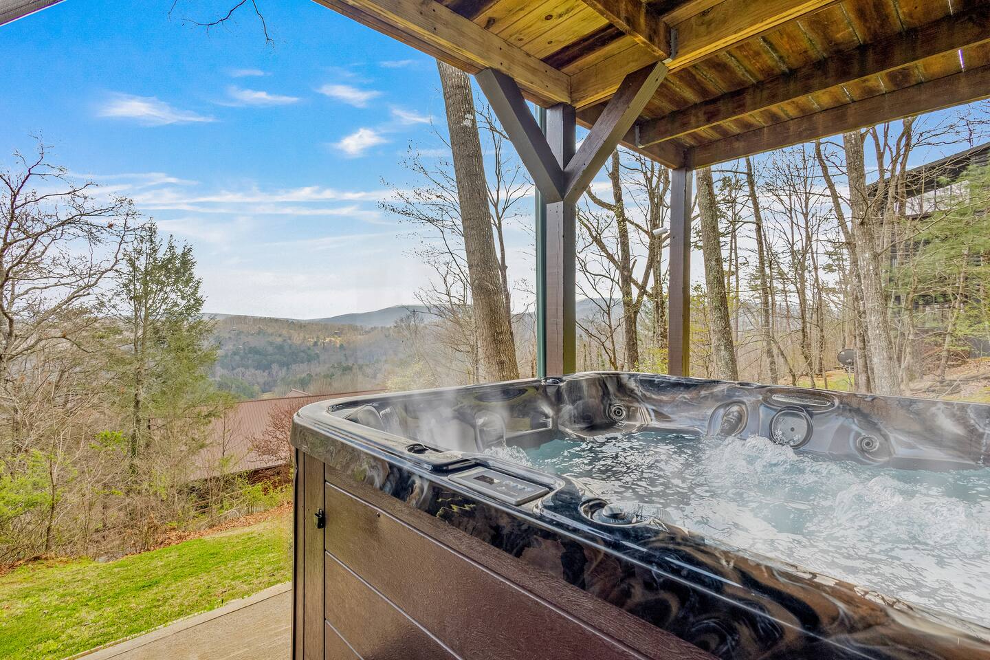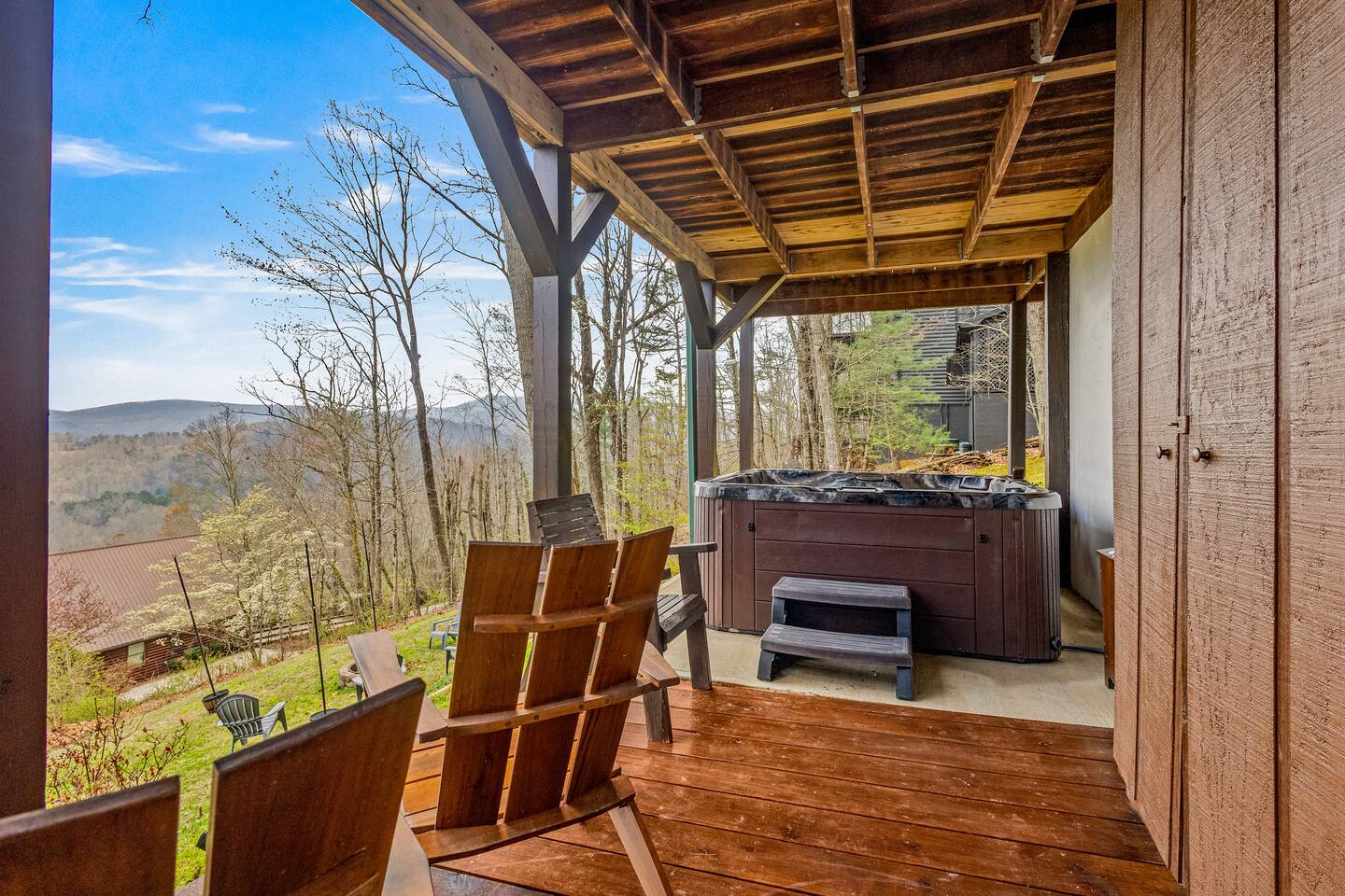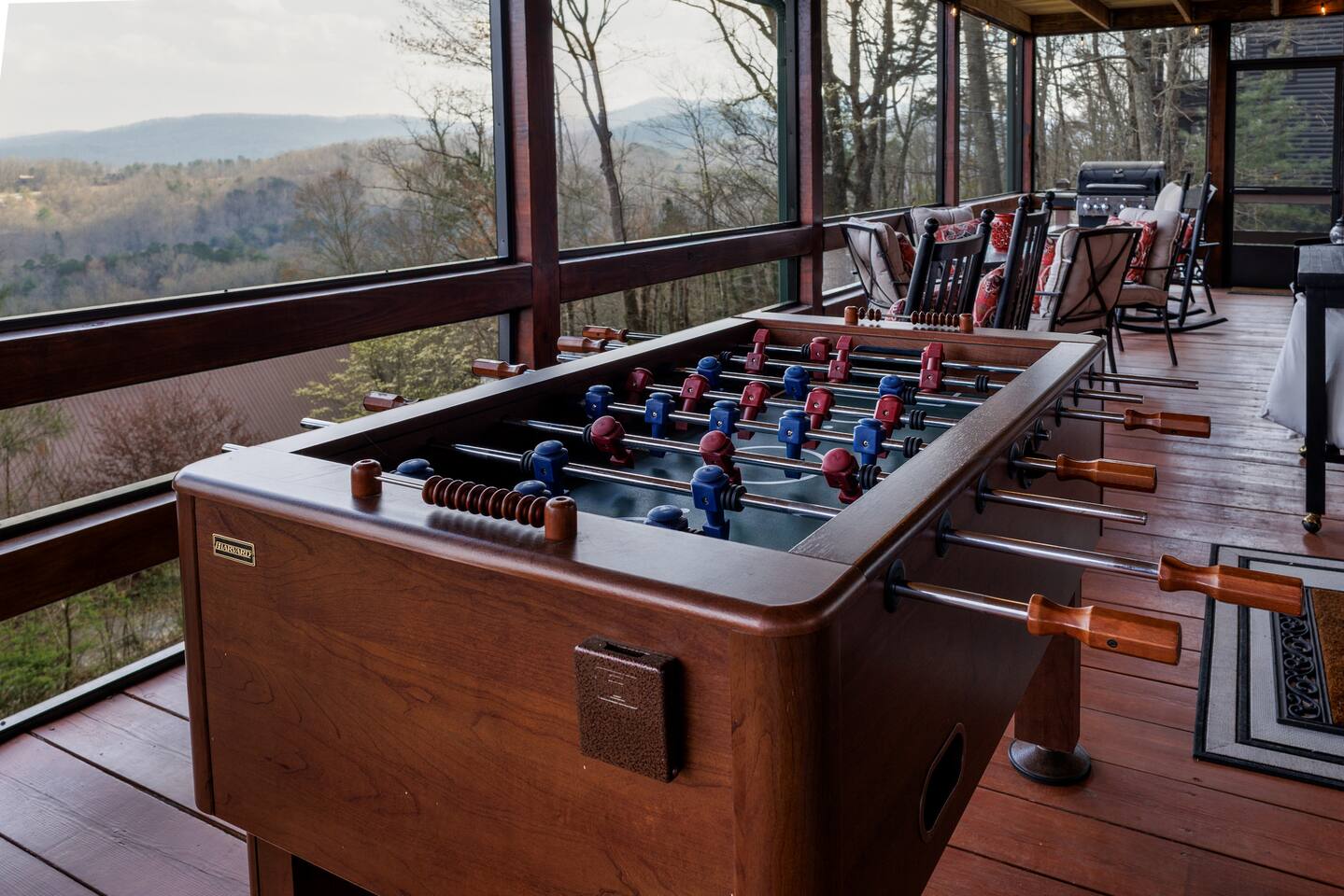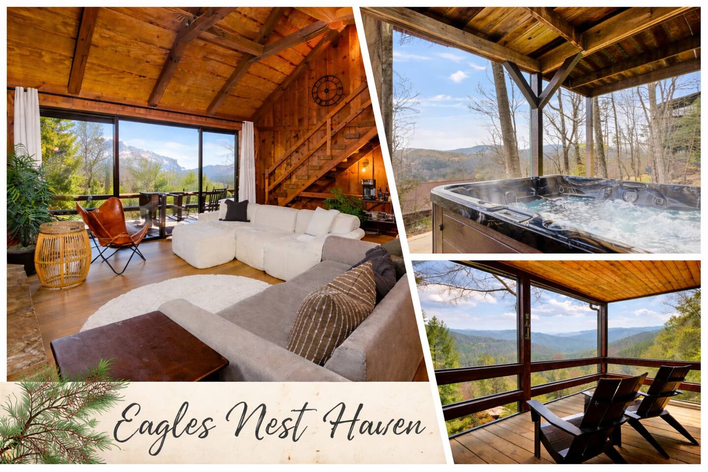 Why Guests Love Eagles View Haven • Hot tub on the deck with stunning mountain views • Views from every room & all three decks • Sleeps up to 10 comfortably • Pet friendly with dog beds, bowls & blankets • Newly added fenced in yard- starting April 17th. • Game room with pool table, air hockey & 75” movie TV • Wrap-around porch with 180° views & outdoor dining • Only 7 minutes to Downtown Blue Ridge • 5 minutes to Mineral Springs hiking & close to Aska Trails • Easy paved road access & parking for 4 vehicles * Ev Charger ⸻ 🛋️ Main Level Living (Where the Views Begin) High ceilings, a cozy gas fireplace, and comfortable seating set the tone for mountain relaxation. • Smart TV for movie nights • Dining table for 8 + 4 bar stools • Fully stocked kitchen with toaster oven, toaster, blender, rice cooker, bakeware, wine glasses, spices & olive oil • Coffee bar with drip coffee maker, Keurig (K-cups), French press, teas, creamers & syrups 🛏️ Main Floor King Suite with Views • Luxury king bed with premium linens • Dresser, closet & hangers • Full bath with walk-in shower • Direct porch access with unforgettable views • Washer & dryer with laundry pods Step outside to the wrap-around deck featuring the hot tub, grill, and outdoor dining area, and foosball table. Soak under the stars or start your morning in the warm bubbles with mountain fog rolling below. ⸻ 🌅 Upstairs Private King Suite • King bed with luxury linens • Smart TV & panoramic views • Private screened-in porch perfect for sunrise coffee or sunset wine with incredible 180 views. • Full bathroom with walk-in shower ⸻ 🎯 Lower Level Fun Zone Built for laughs, games, and movie nights. • King bedroom with ensuite bath (tub/shower combo) • Game room with pool table, air hockey, board games & 75” TV • Sleeper sofa (sleeps 2) • Two twin floor beds ideal for kids or extra guests All bathrooms include shampoo, conditioner & body wash. ⸻ 🌿 Outdoor Mountain Living • Three spacious decks with jaw-dropping views • Private hot tub with long-range mountain scenery • Newly added Fenced in yard for pets. Starting April 17th. • Grass yard with fire pit & seating for 6 (Bring your own firewood) • Incredible sunrise and sunset vantage points Whether you’re planning a hiking adventure, couples retreat, or family getaway, Eagles View Haven delivers comfort, entertainment, and unforgettable scenery. 📅 Come stay where the mountains feel endless and the hot tub views make it hard to leave.