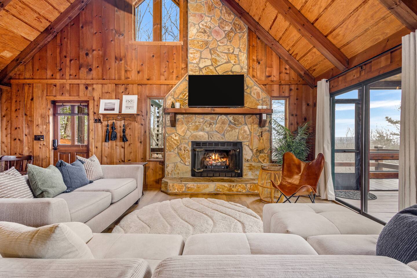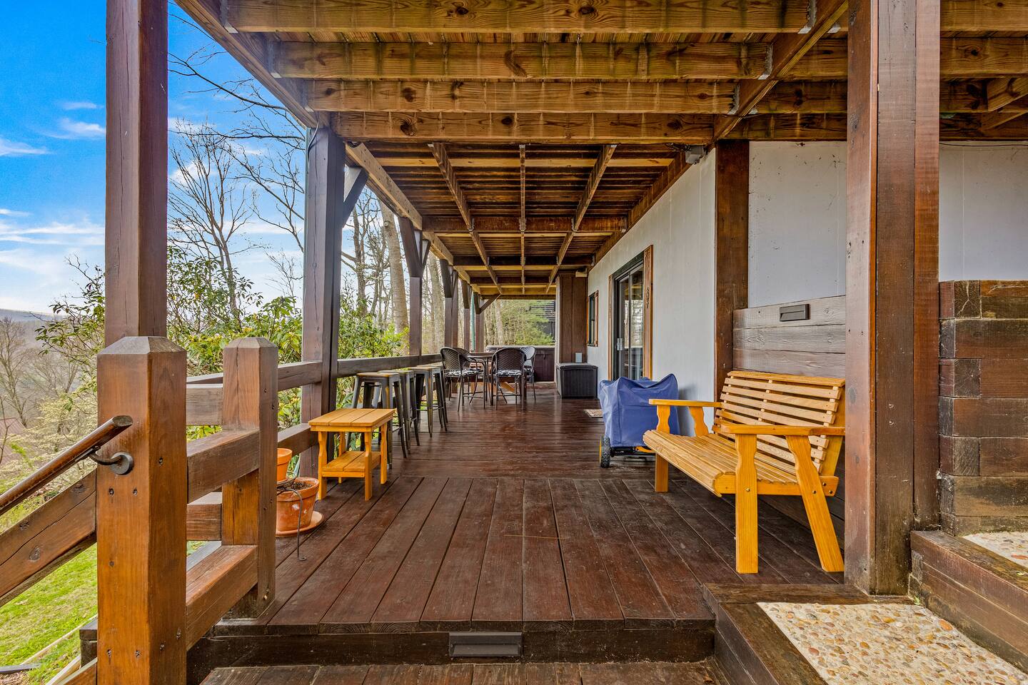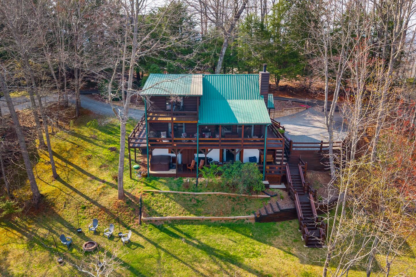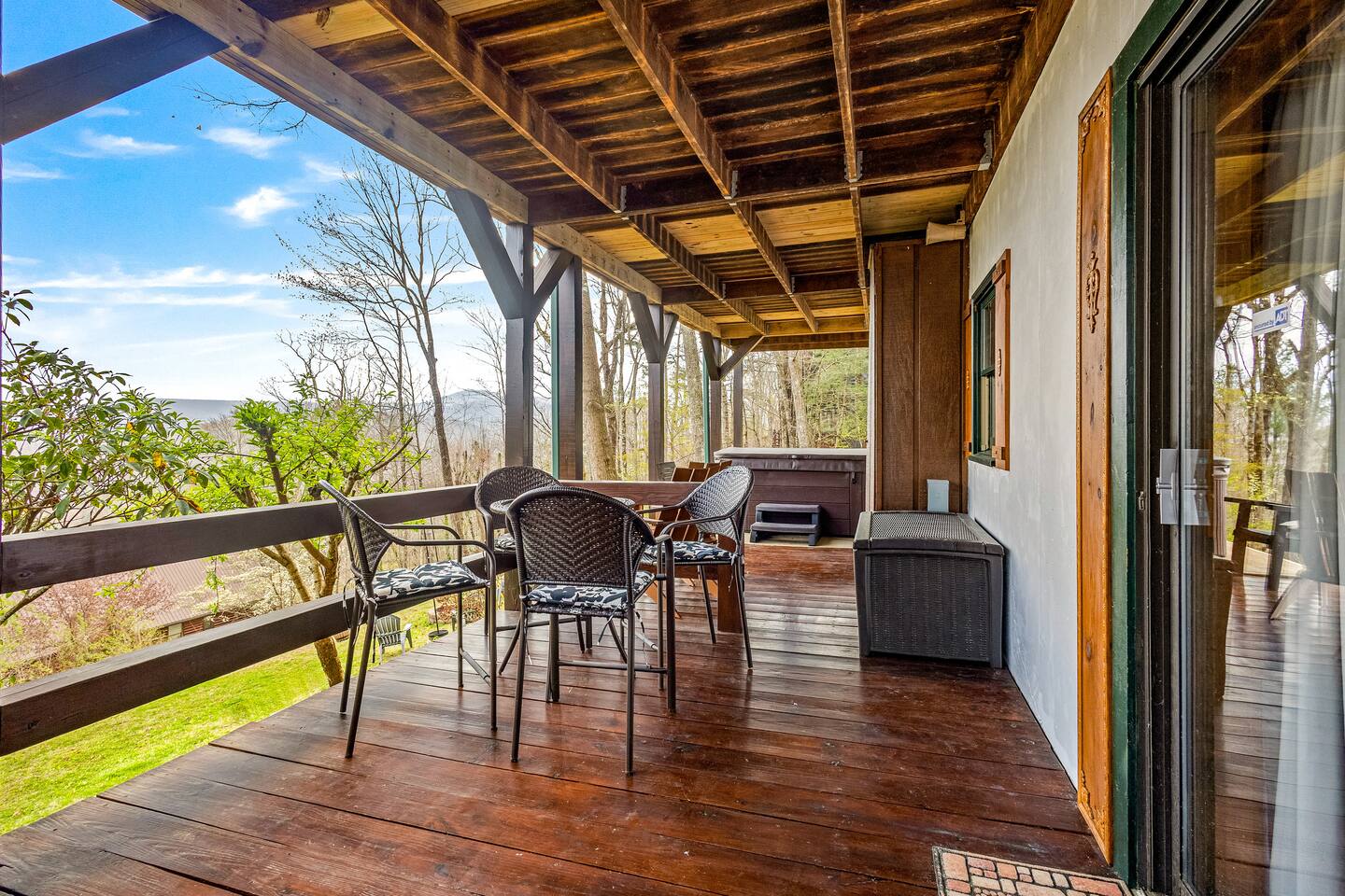 Why Guests Love Eagles View Haven • Hot tub on the deck with stunning mountain views • Views from every room & all three decks • Sleeps up to 10 comfortably • Pet friendly with dog beds, bowls & blankets • Newly added fenced in yard- starting April 17th. • Game room with pool table, air hockey & 75” movie TV • Wrap-around porch with 180° views & outdoor dining • Only 7 minutes to Downtown Blue Ridge • 5 minutes to Mineral Springs hiking & close to Aska Trails • Easy paved road access & parking for 4 vehicles * Ev Charger ⸻ 🛋️ Main Level Living (Where the Views Begin) High ceilings, a cozy gas fireplace, and comfortable seating set the tone for mountain relaxation. • Smart TV for movie nights • Dining table for 8 + 4 bar stools • Fully stocked kitchen with toaster oven, toaster, blender, rice cooker, bakeware, wine glasses, spices & olive oil • Coffee bar with drip coffee maker, Keurig (K-cups), French press, teas, creamers & syrups 🛏️ Main Floor King Suite with Views • Luxury king bed with premium linens • Dresser, closet & hangers • Full bath with walk-in shower • Direct porch access with unforgettable views • Washer & dryer with laundry pods Step outside to the wrap-around deck featuring the hot tub, grill, and outdoor dining area, and foosball table. Soak under the stars or start your morning in the warm bubbles with mountain fog rolling below. ⸻ 🌅 Upstairs Private King Suite • King bed with luxury linens • Smart TV & panoramic views • Private screened-in porch perfect for sunrise coffee or sunset wine with incredible 180 views. • Full bathroom with walk-in shower ⸻ 🎯 Lower Level Fun Zone Built for laughs, games, and movie nights. • King bedroom with ensuite bath (tub/shower combo) • Game room with pool table, air hockey, board games & 75” TV • Sleeper sofa (sleeps 2) • Two twin floor beds ideal for kids or extra guests All bathrooms include shampoo, conditioner & body wash. ⸻ 🌿 Outdoor Mountain Living • Three spacious decks with jaw-dropping views • Private hot tub with long-range mountain scenery • Newly added Fenced in yard for pets. Starting April 17th. • Grass yard with fire pit & seating for 6 (Bring your own firewood) • Incredible sunrise and sunset vantage points Whether you’re planning a hiking adventure, couples retreat, or family getaway, Eagles View Haven delivers comfort, entertainment, and unforgettable scenery. 📅 Come stay where the mountains feel endless and the hot tub views make it hard to leave.