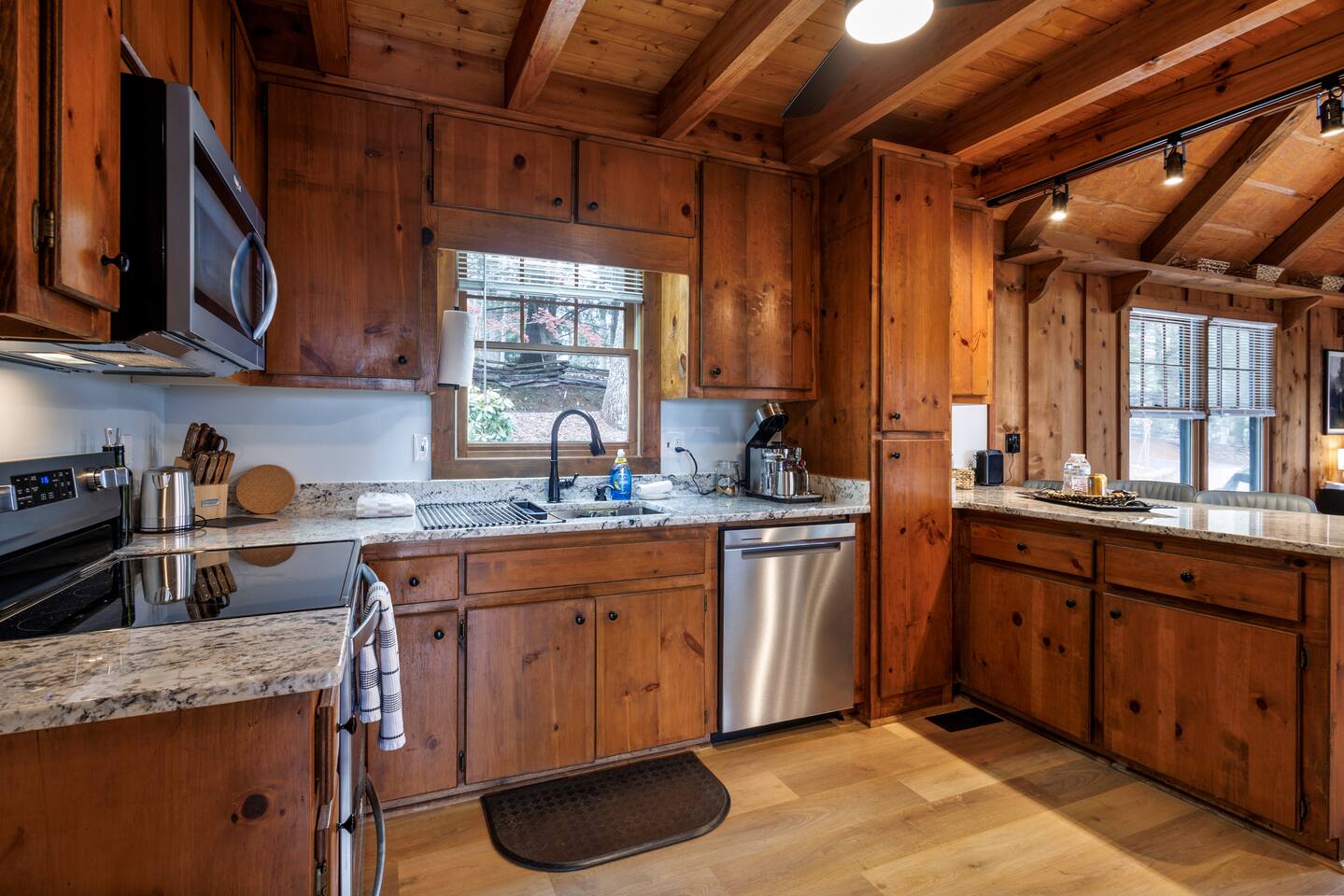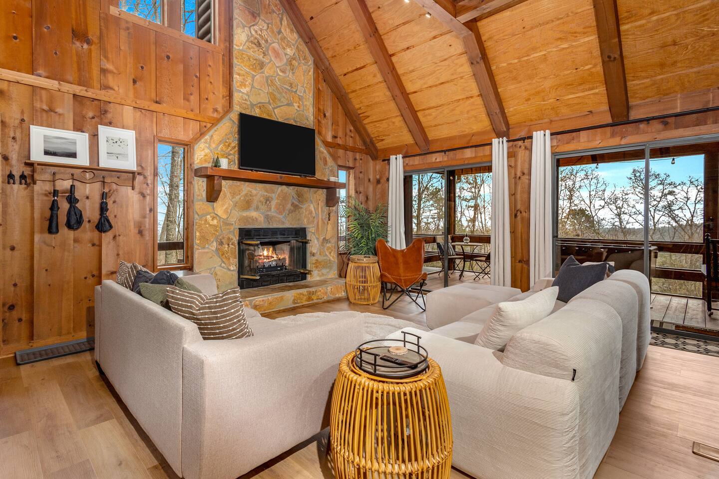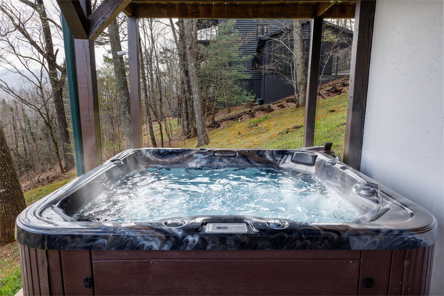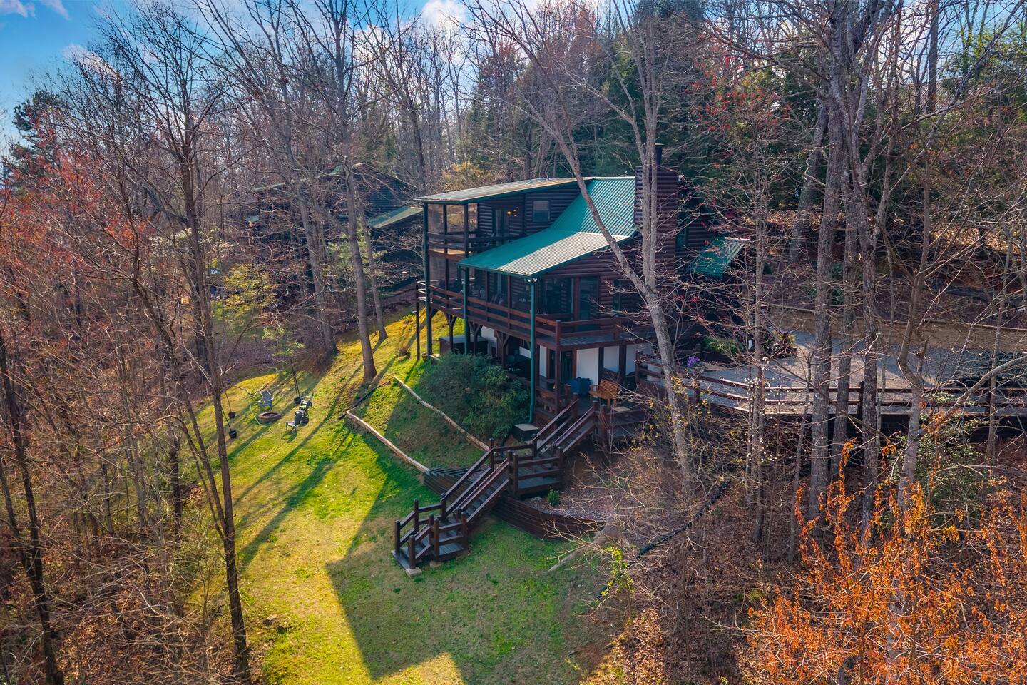 Why Guests Love Eagles View Haven • Hot tub on the deck with stunning mountain views • Views from every room & all three decks • Sleeps up to 10 comfortably • Pet friendly with dog beds, bowls & blankets • Newly added fenced in yard- starting April 17th. • Game room with pool table, air hockey & 75” movie TV • Wrap-around porch with 180° views & outdoor dining • Only 7 minutes to Downtown Blue Ridge • 5 minutes to Mineral Springs hiking & close to Aska Trails • Easy paved road access & parking for 4 vehicles * Ev Charger ⸻ 🛋️ Main Level Living (Where the Views Begin) High ceilings, a cozy gas fireplace, and comfortable seating set the tone for mountain relaxation. • Smart TV for movie nights • Dining table for 8 + 4 bar stools • Fully stocked kitchen with toaster oven, toaster, blender, rice cooker, bakeware, wine glasses, spices & olive oil • Coffee bar with drip coffee maker, Keurig (K-cups), French press, teas, creamers & syrups 🛏️ Main Floor King Suite with Views • Luxury king bed with premium linens • Dresser, closet & hangers • Full bath with walk-in shower • Direct porch access with unforgettable views • Washer & dryer with laundry pods Step outside to the wrap-around deck featuring the hot tub, grill, and outdoor dining area, and foosball table. Soak under the stars or start your morning in the warm bubbles with mountain fog rolling below. ⸻ 🌅 Upstairs Private King Suite • King bed with luxury linens • Smart TV & panoramic views • Private screened-in porch perfect for sunrise coffee or sunset wine with incredible 180 views. • Full bathroom with walk-in shower ⸻ 🎯 Lower Level Fun Zone Built for laughs, games, and movie nights. • King bedroom with ensuite bath (tub/shower combo) • Game room with pool table, air hockey, board games & 75” TV • Sleeper sofa (sleeps 2) • Two twin floor beds ideal for kids or extra guests All bathrooms include shampoo, conditioner & body wash. ⸻ 🌿 Outdoor Mountain Living • Three spacious decks with jaw-dropping views • Private hot tub with long-range mountain scenery • Newly added Fenced in yard for pets. Starting April 17th. • Grass yard with fire pit & seating for 6 (Bring your own firewood) • Incredible sunrise and sunset vantage points Whether you’re planning a hiking adventure, couples retreat, or family getaway, Eagles View Haven delivers comfort, entertainment, and unforgettable scenery. 📅 Come stay where the mountains feel endless and the hot tub views make it hard to leave.