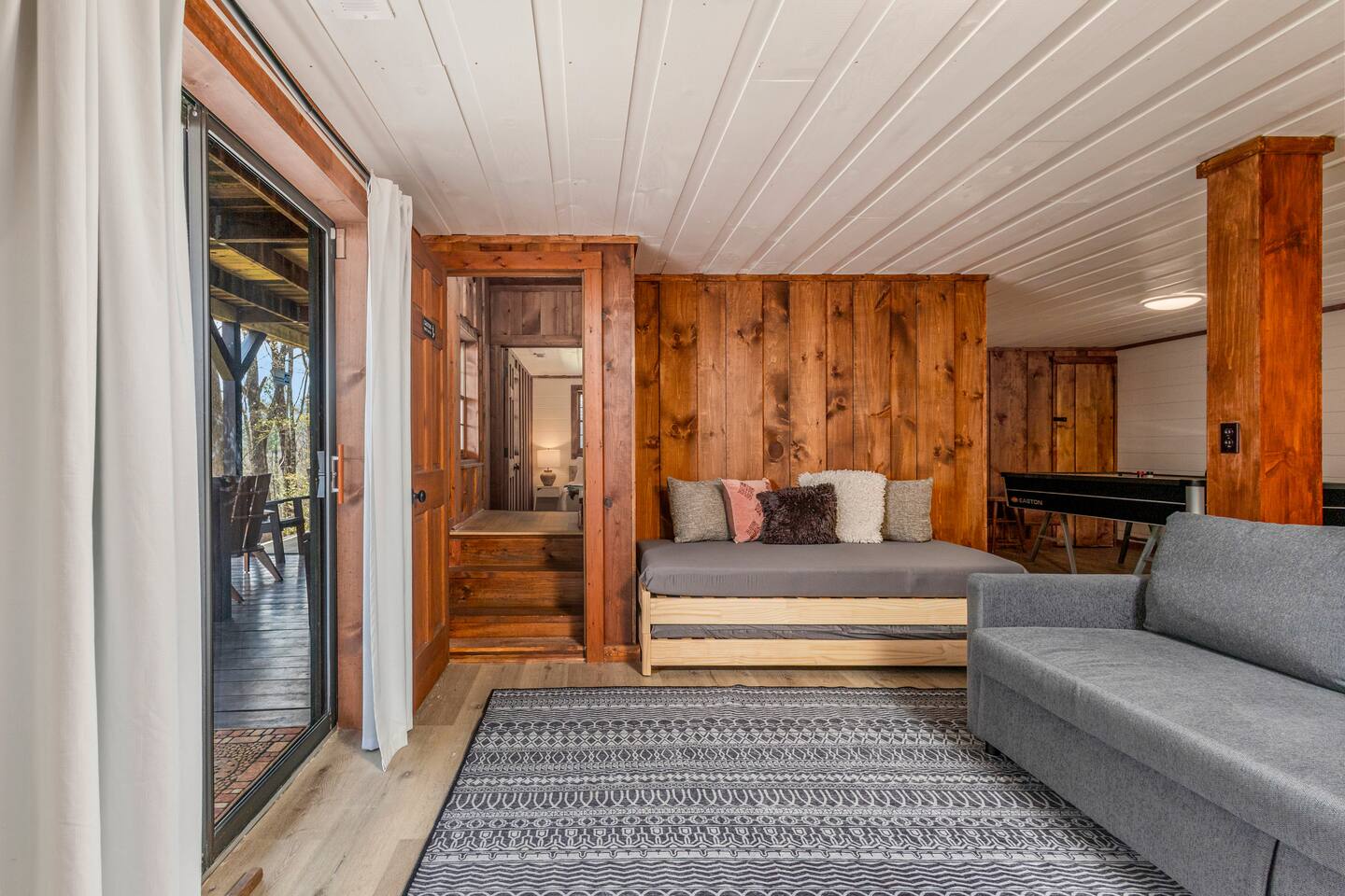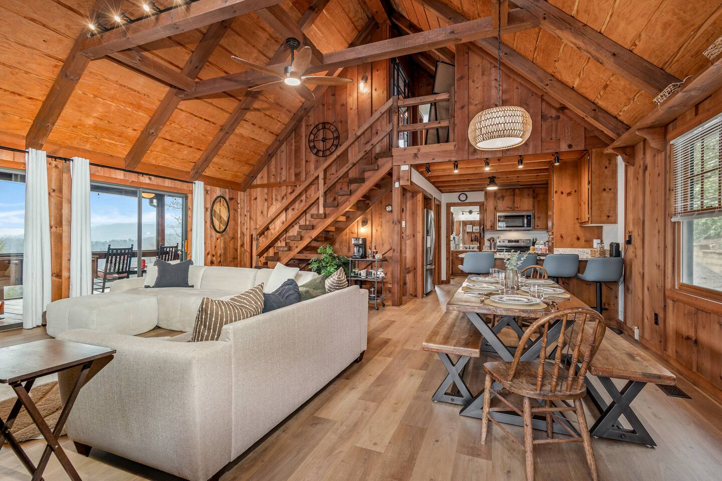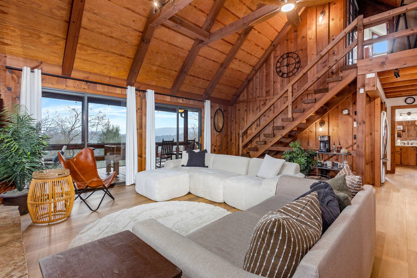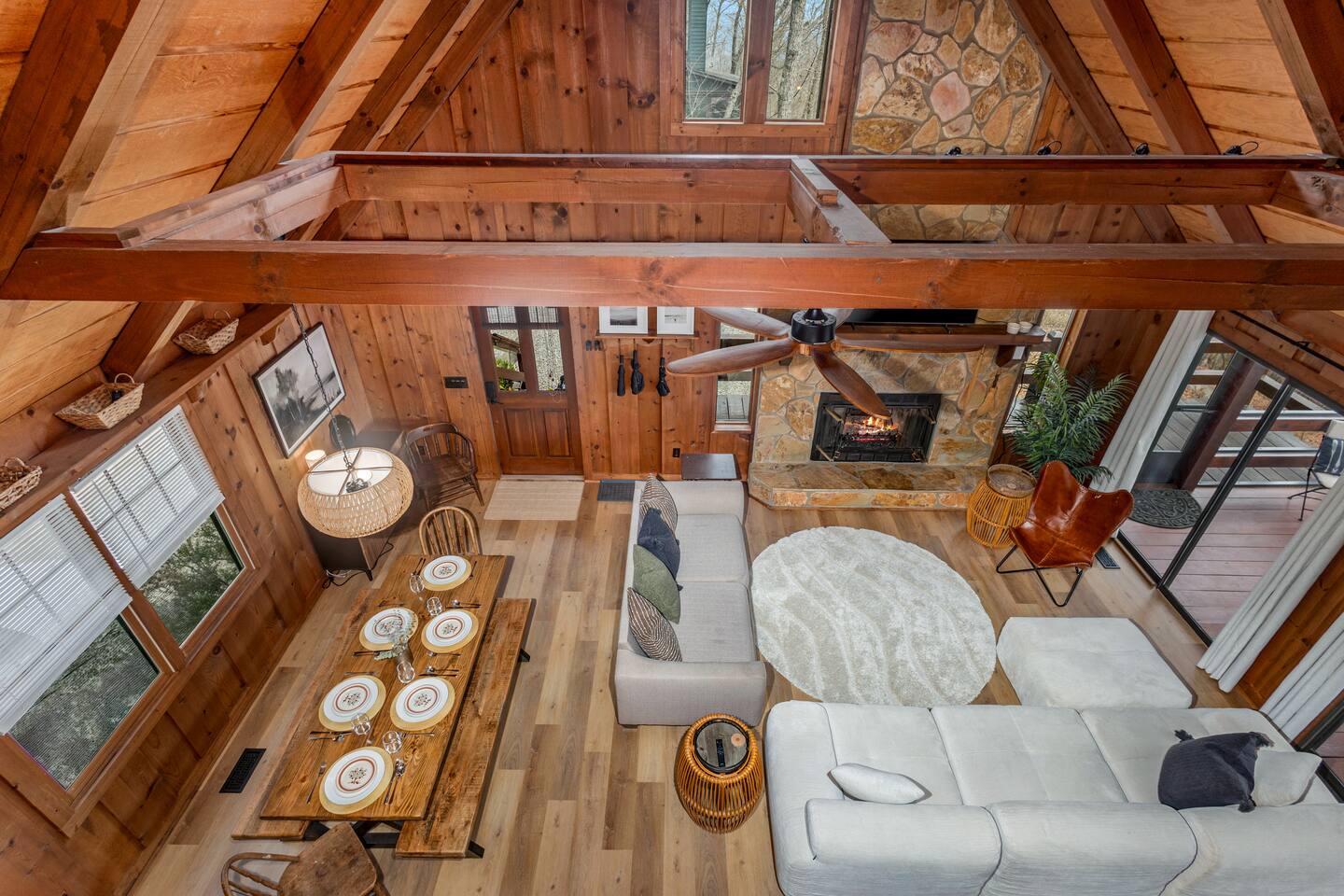 Why Guests Love Eagles View Haven • Hot tub on the deck with stunning mountain views • Views from every room & all three decks • Sleeps up to 10 comfortably • Pet friendly with dog beds, bowls & blankets • Newly added fenced in yard- starting April 17th. • Game room with pool table, air hockey & 75” movie TV • Wrap-around porch with 180° views & outdoor dining • Only 7 minutes to Downtown Blue Ridge • 5 minutes to Mineral Springs hiking & close to Aska Trails • Easy paved road access & parking for 4 vehicles * Ev Charger ⸻ 🛋️ Main Level Living (Where the Views Begin) High ceilings, a cozy gas fireplace, and comfortable seating set the tone for mountain relaxation. • Smart TV for movie nights • Dining table for 8 + 4 bar stools • Fully stocked kitchen with toaster oven, toaster, blender, rice cooker, bakeware, wine glasses, spices & olive oil • Coffee bar with drip coffee maker, Keurig (K-cups), French press, teas, creamers & syrups 🛏️ Main Floor King Suite with Views • Luxury king bed with premium linens • Dresser, closet & hangers • Full bath with walk-in shower • Direct porch access with unforgettable views • Washer & dryer with laundry pods Step outside to the wrap-around deck featuring the hot tub, grill, and outdoor dining area, and foosball table. Soak under the stars or start your morning in the warm bubbles with mountain fog rolling below. ⸻ 🌅 Upstairs Private King Suite • King bed with luxury linens • Smart TV & panoramic views • Private screened-in porch perfect for sunrise coffee or sunset wine with incredible 180 views. • Full bathroom with walk-in shower ⸻ 🎯 Lower Level Fun Zone Built for laughs, games, and movie nights. • King bedroom with ensuite bath (tub/shower combo) • Game room with pool table, air hockey, board games & 75” TV • Sleeper sofa (sleeps 2) • Two twin floor beds ideal for kids or extra guests All bathrooms include shampoo, conditioner & body wash. ⸻ 🌿 Outdoor Mountain Living • Three spacious decks with jaw-dropping views • Private hot tub with long-range mountain scenery • Newly added Fenced in yard for pets. Starting April 17th. • Grass yard with fire pit & seating for 6 (Bring your own firewood) • Incredible sunrise and sunset vantage points Whether you’re planning a hiking adventure, couples retreat, or family getaway, Eagles View Haven delivers comfort, entertainment, and unforgettable scenery. 📅 Come stay where the mountains feel endless and the hot tub views make it hard to leave.